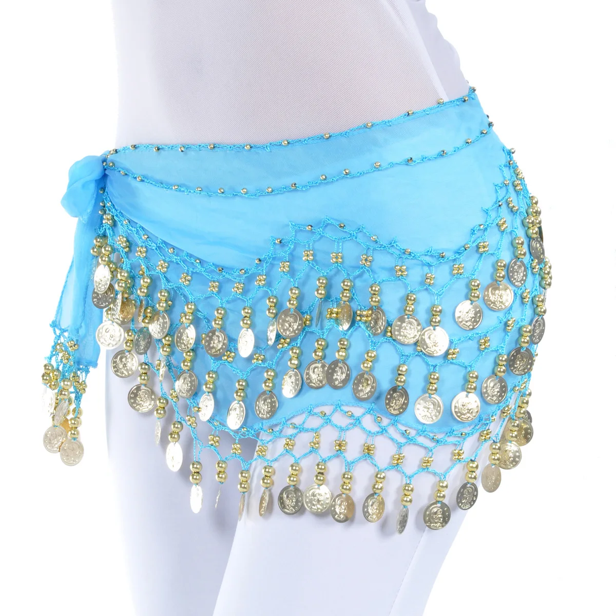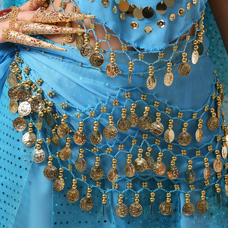 1 قطعة فستان الرقص الشرقي ، وشاح الورك ، الذهب الرقص الشرقي التفاف فستان حزام عملة حزام الرقص أداء زي مهرجان حفلة الهالوين