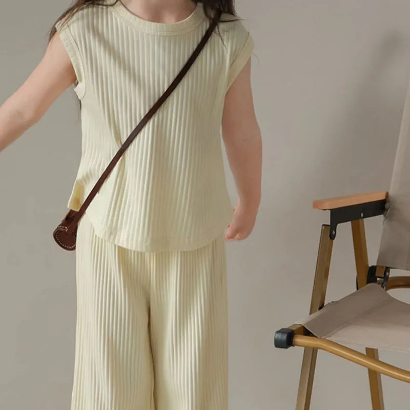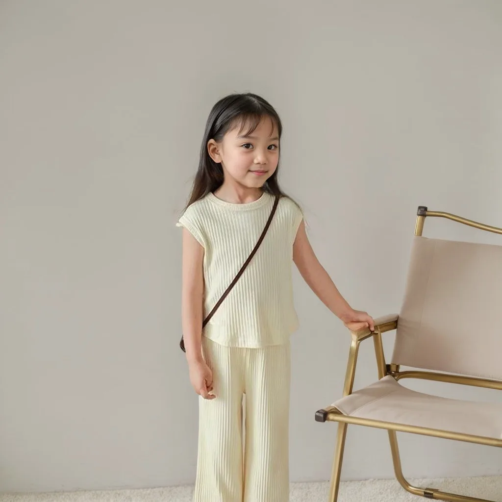 1 قطعة مجموعة ملابس الأطفال الصيف الفتيات الاطفال طفل الملابس بلون تي شيرت تانك القمم + طول السراويل طفلة الملابس
