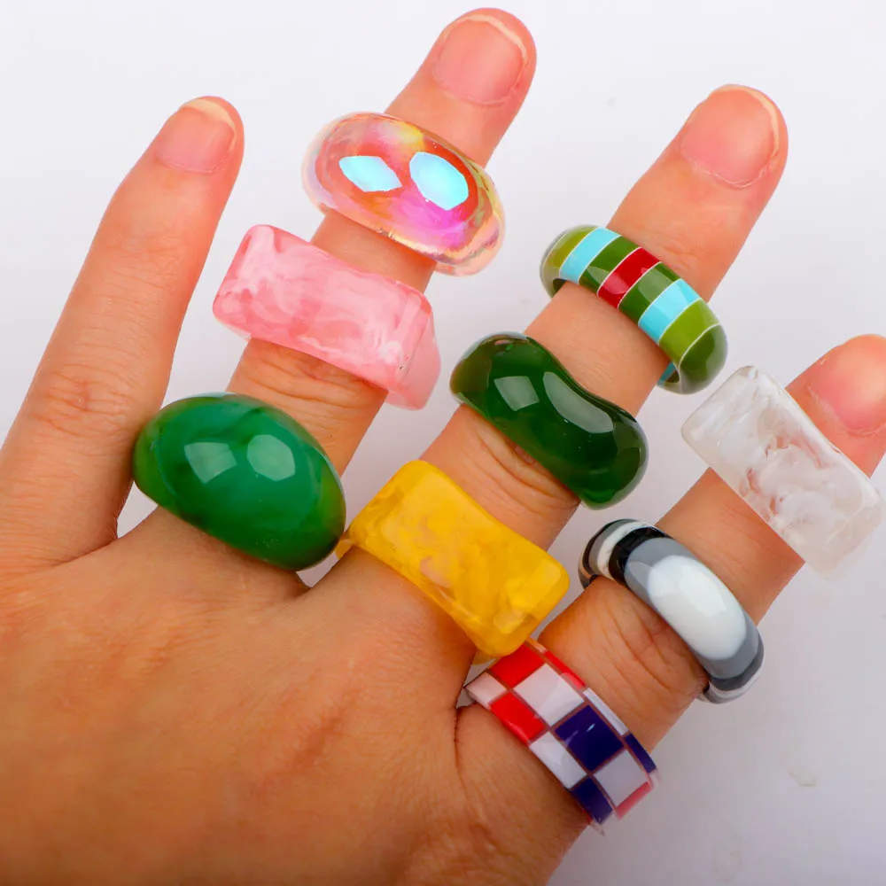 10/20 قطعة/الوحدة موضة جديدة جميلة متعدد الألوان الراتنج الطبيعي خواتم فتاة لطيف الحلو مضحك فنجر مجوهرات هدايا الحفلات نمط مختلط