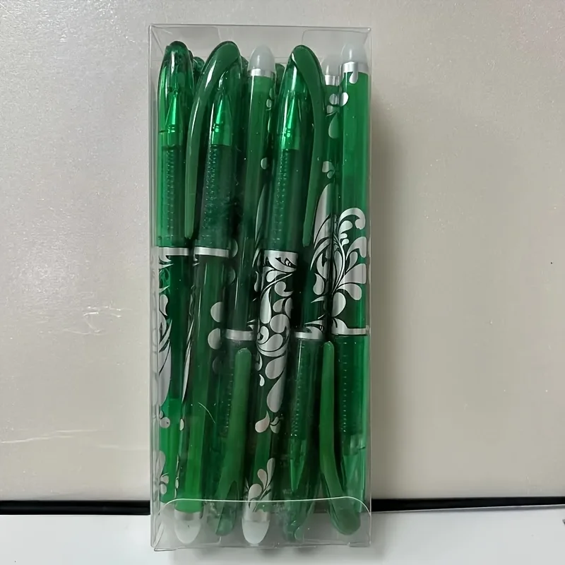 12 عبوة من أقلام الجل الملونة القابلة للمسح - طرف بلاستيكي متوسط 0.5 مم، كتابة سلسة، ألوان نابضة بالحياة (أخضر، أحمر، أزرق، أسود)