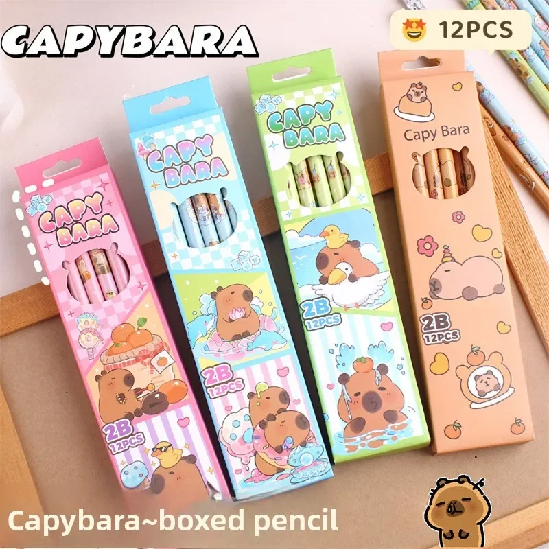 12 قطعة/المجموعة لطيف الكرتون كابيبارا 2B ممحاة قلم رصاص خشبي Kawaii HB قلم رصاص رسم القلم رسم أطفال طلاب المدارس القرطاسية