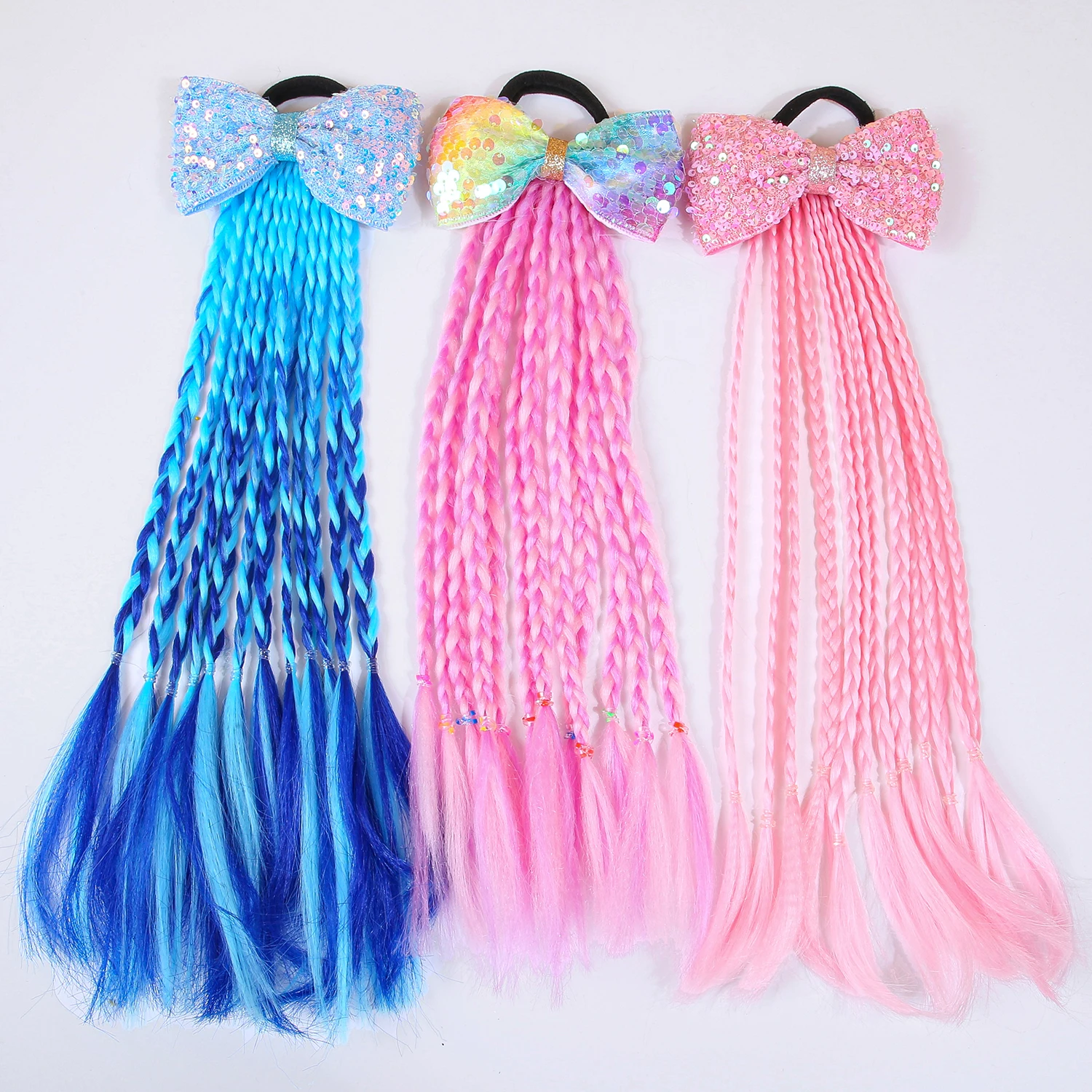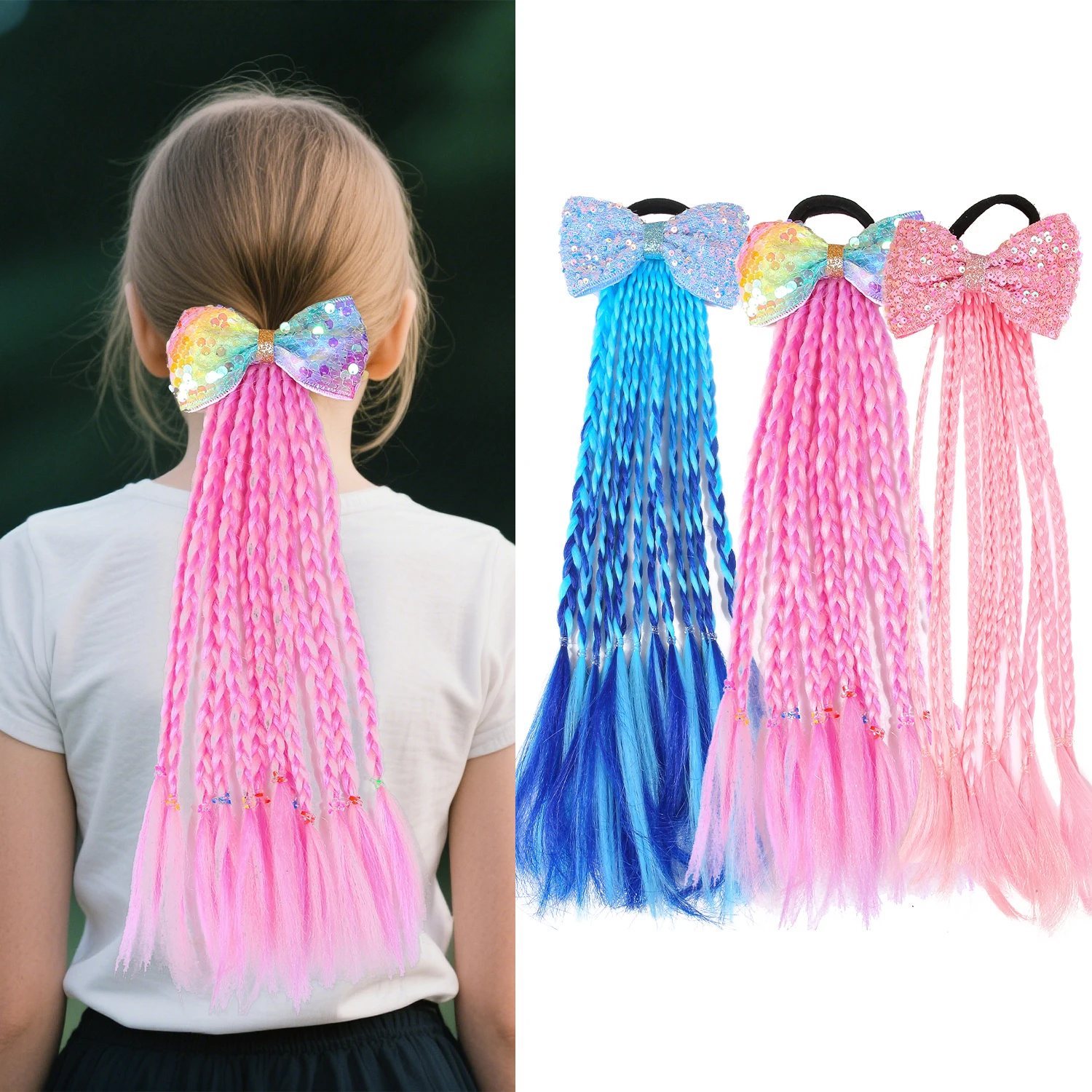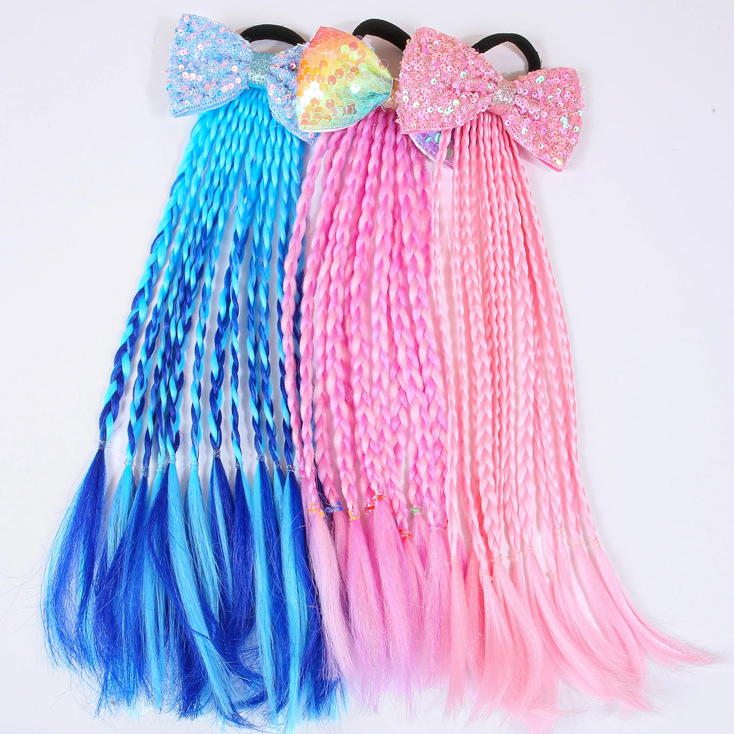 1/3 قطعة جديلة الموضة الحلو العلاقات الشعر الفتيات الترتر فيونكات شعر العلاقات تويست طويل جديلة شعر مستعار العصابات مع الانحناء إكسسوارات الشعر الطرف