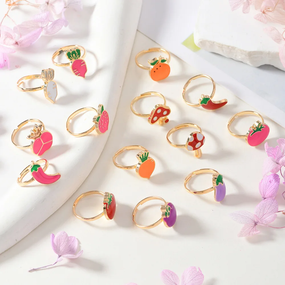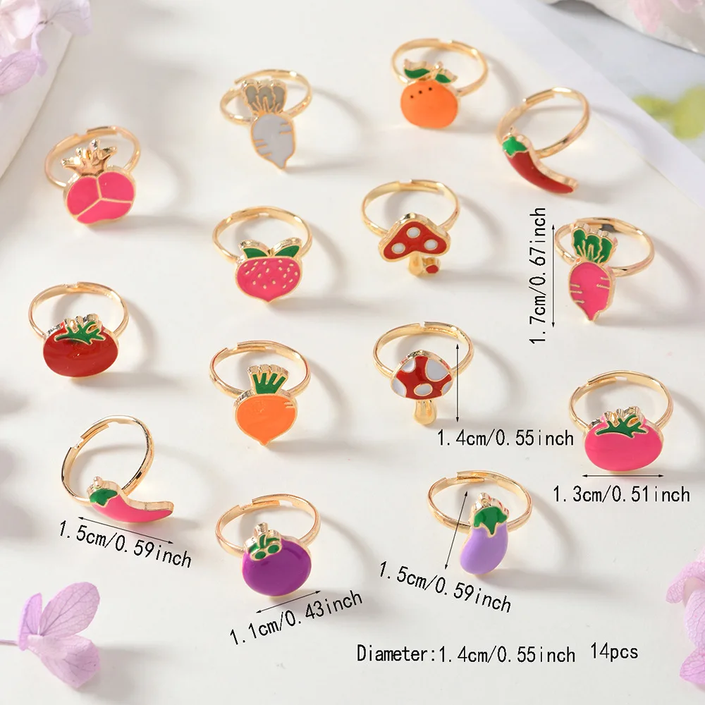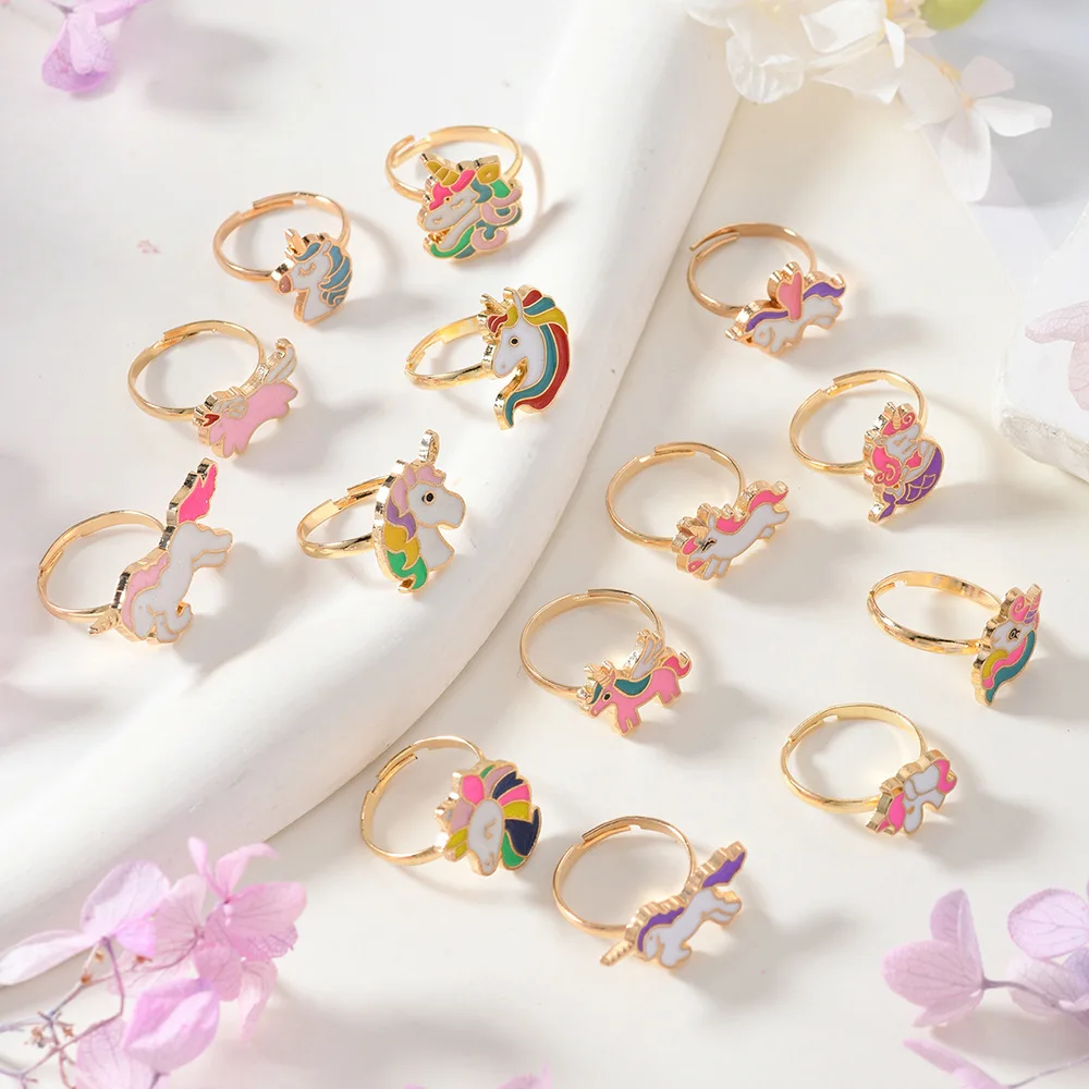 14 قطعة/صندوق الأطفال لطيف قابل للتعديل خواتم التظاهر اللعب ماكياج لعب للفتيات هدايا زهرة يونيكون سبائك خواتم موضة الجمال