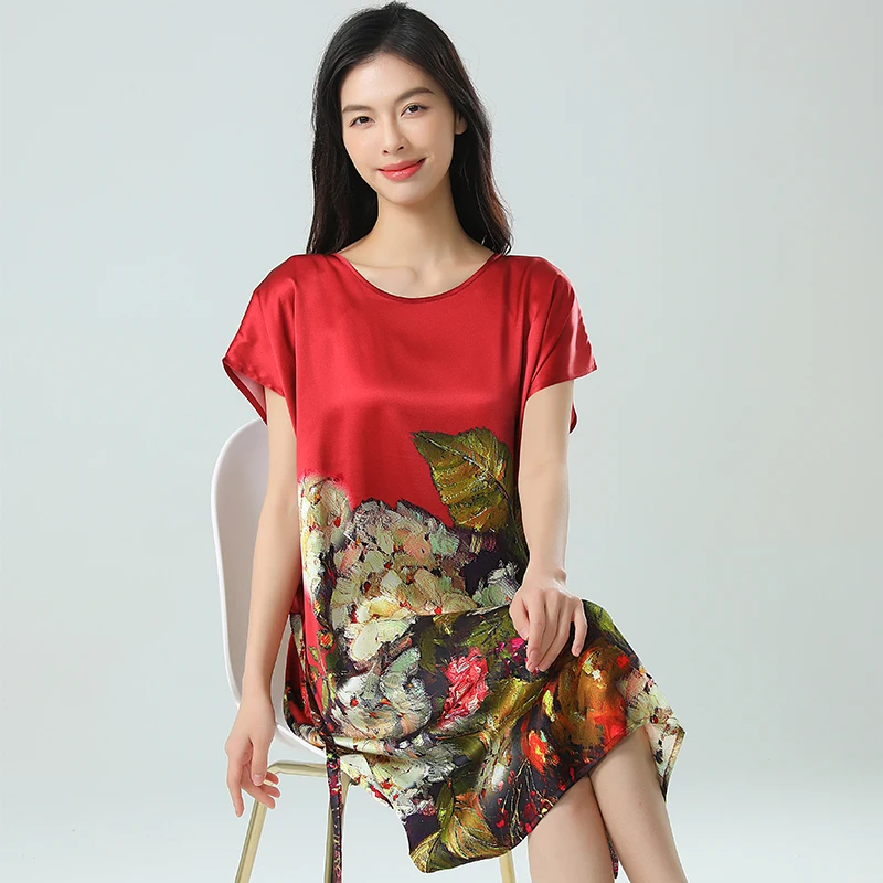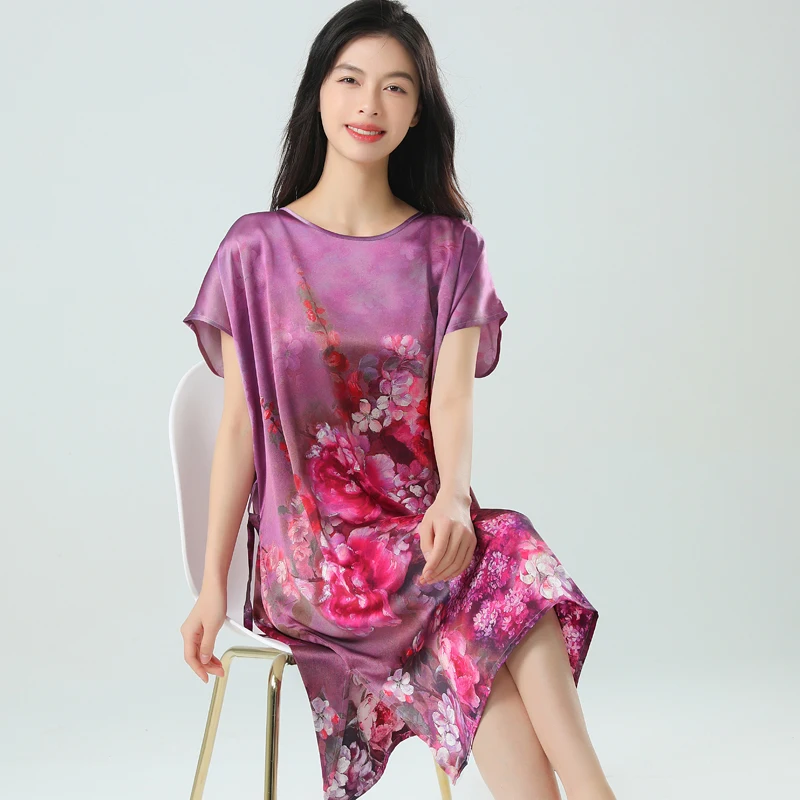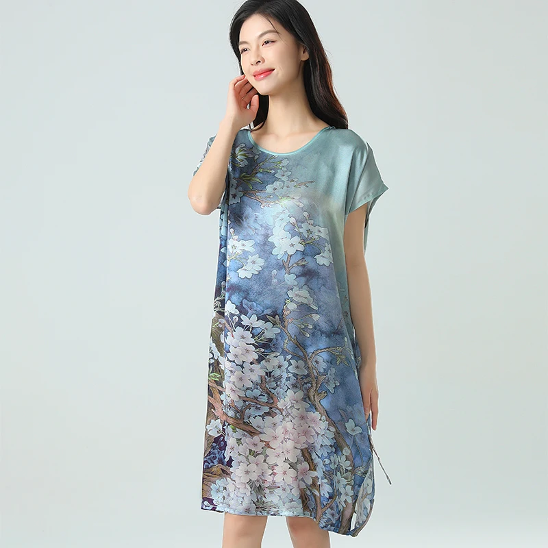 19 مللي متر 100% التوت الحرير فستان منامة النوم المنزل ثوب النوم المرأة فضفاضة حجم كبير قصيرة الأكمام الصيف 40-80 كجم