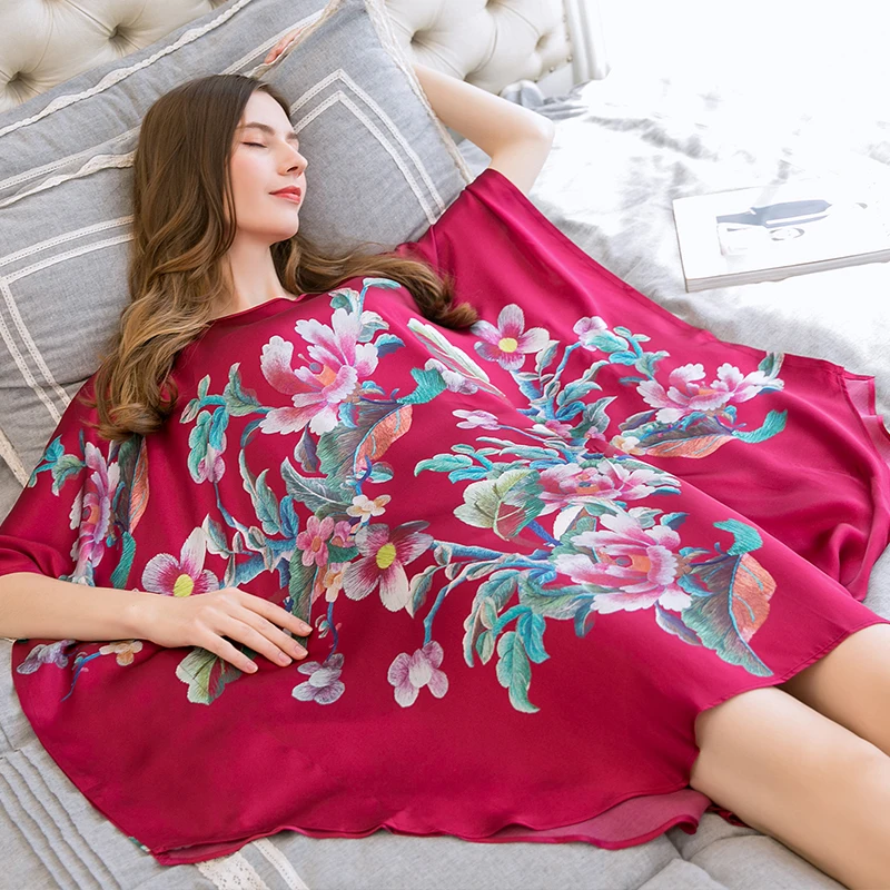 19 مللي متر 100% التوت الحرير قمصان النوم للنساء ملابس خاصة الحرير فستان سهرة طويل نايتي ريال حجم كبير السيدات بيجامة من الحرير 100 كجم