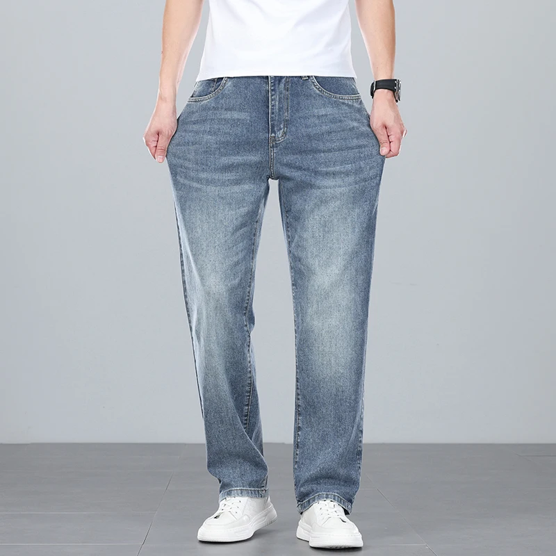 2025 جديد الصيف رقيقة الرجال السراويل الساق المستقيمة الدنيم السراويل خفيفة الأعمال مريحة للتنفس ضوء الفاخرة كل مباراة الجينز