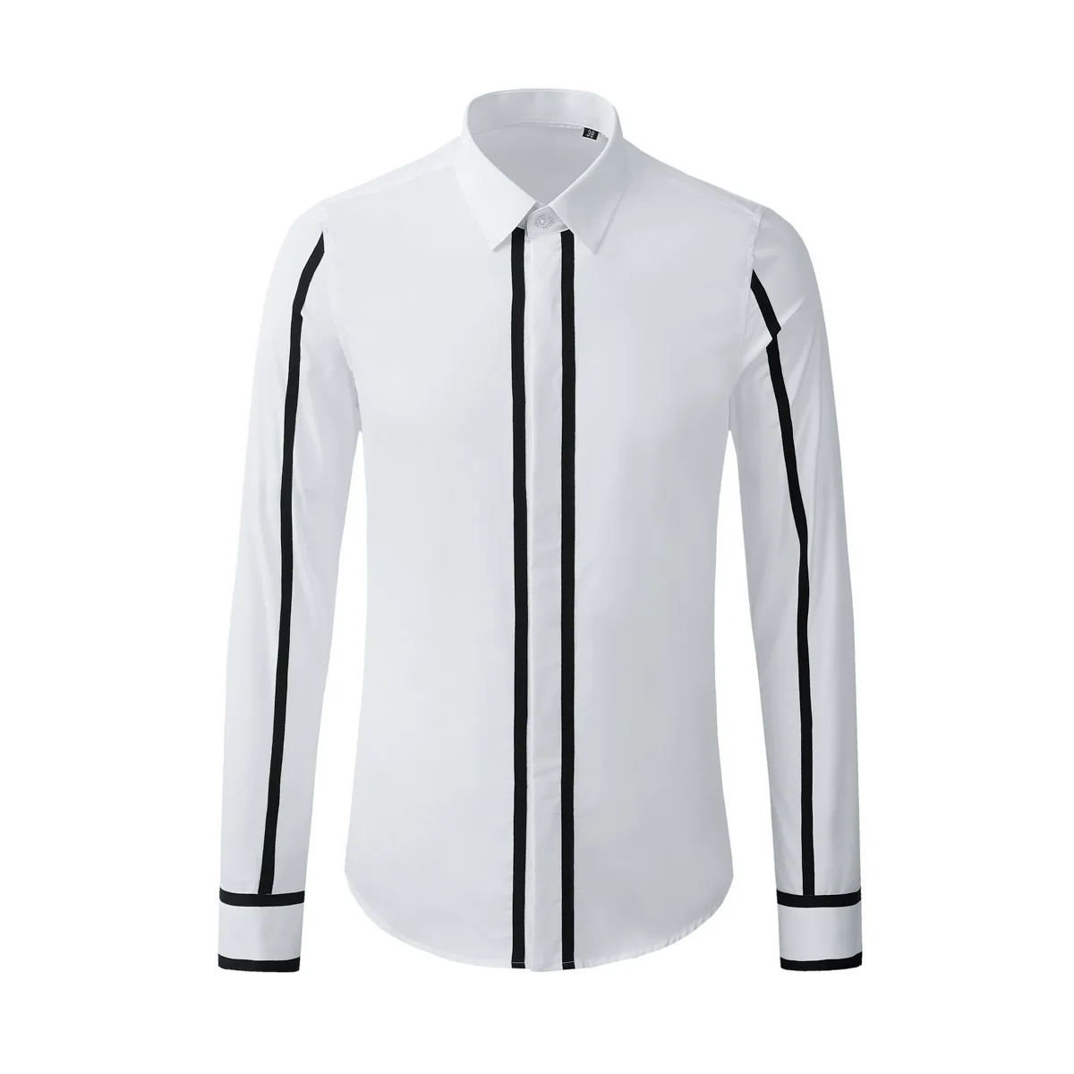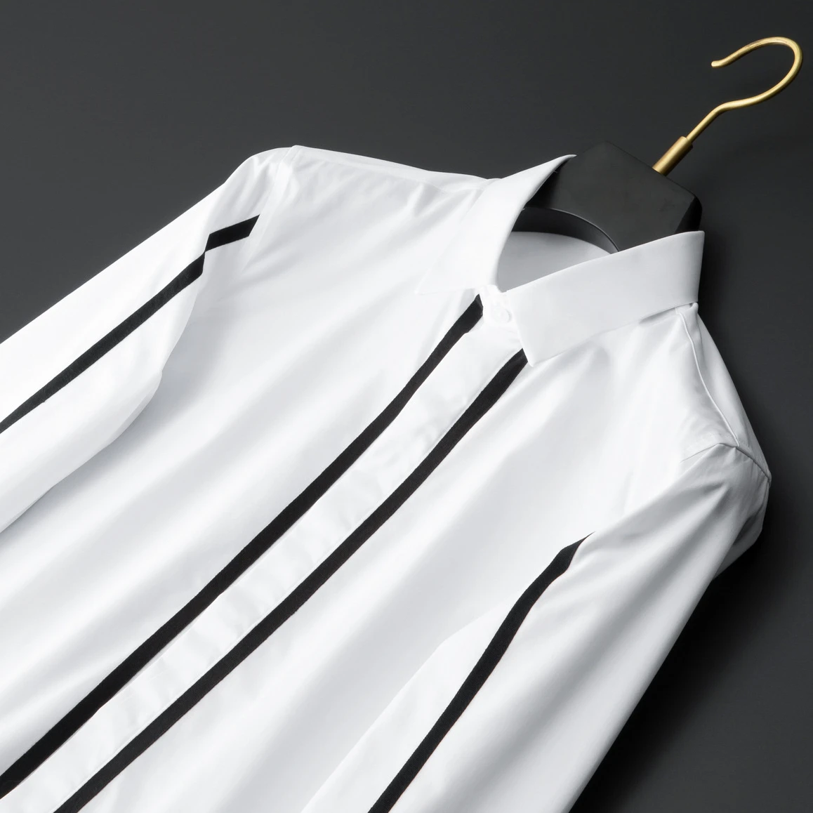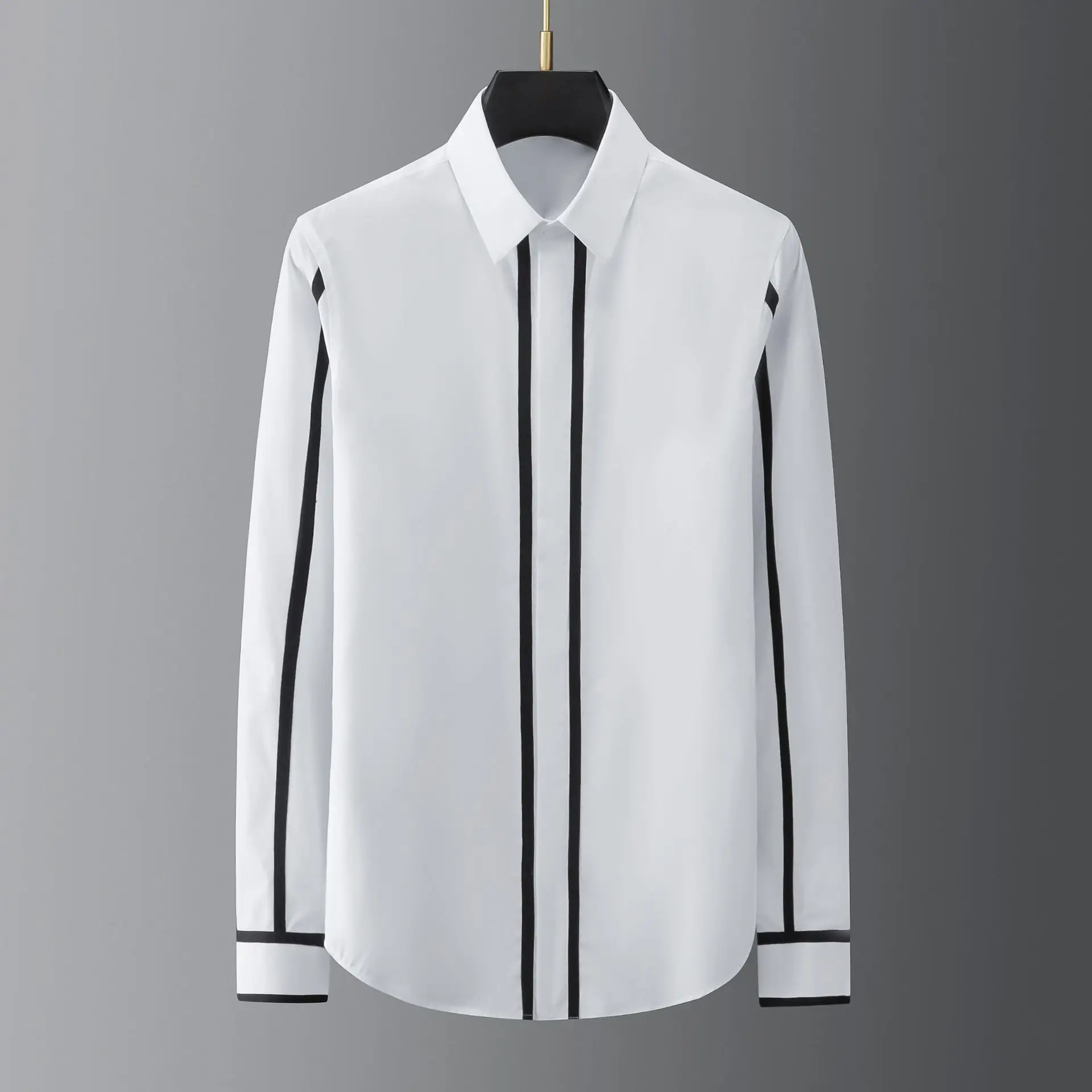 2025 قمصان الرجال هندسية حزام خياطة الأعمال قميص غير رسمي كم طويل فستان رسمي قمصان ملابس الحفلات الاجتماعية قمصان