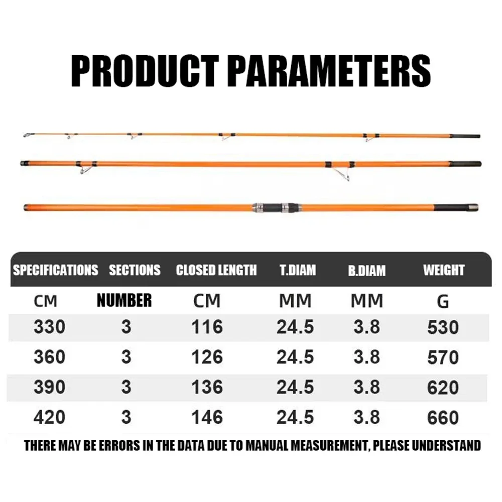 3.3/3.6/3.9/4.2 متر الكارب قضيب 35 كجم تصفح الصيد رود 80-350 جرام 20-60LB السفر تصفح الغزل قضيب 3 قطعة الكربون المياه المالحة قصبة صيد خشبية