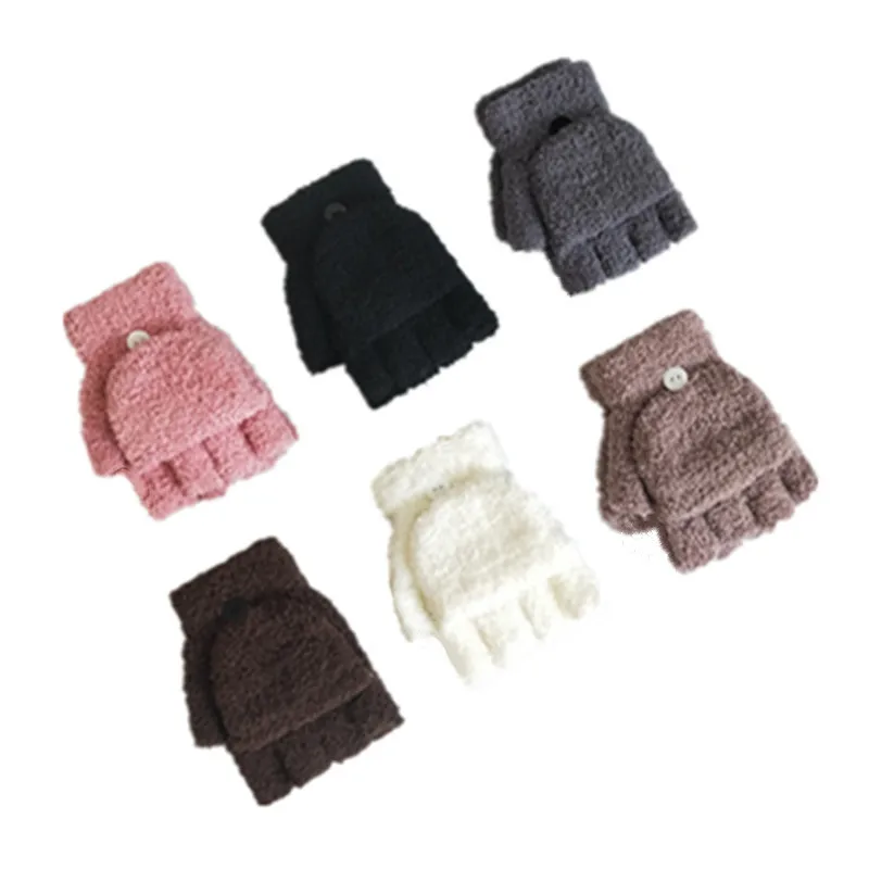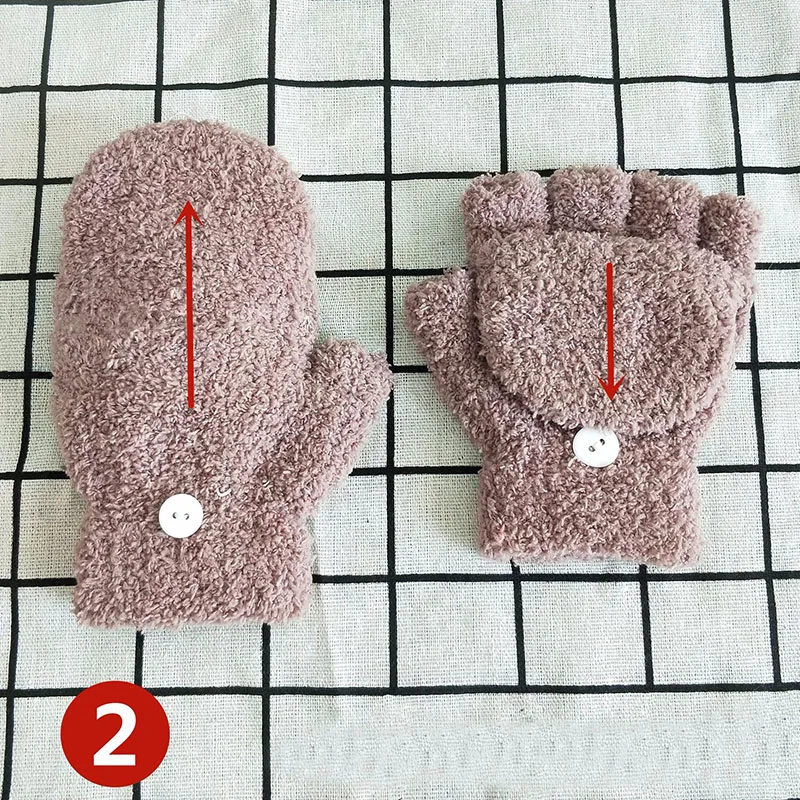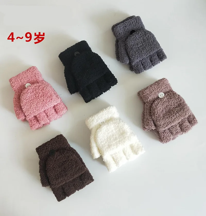 4-9 سنة الأطفال المرجان الصوف متماسكة نصف الاصبع الوجه الكفة القفاز صبي/فتاة الشتاء زائد المخملية سميكة الدافئة الكتابة قفاز C92