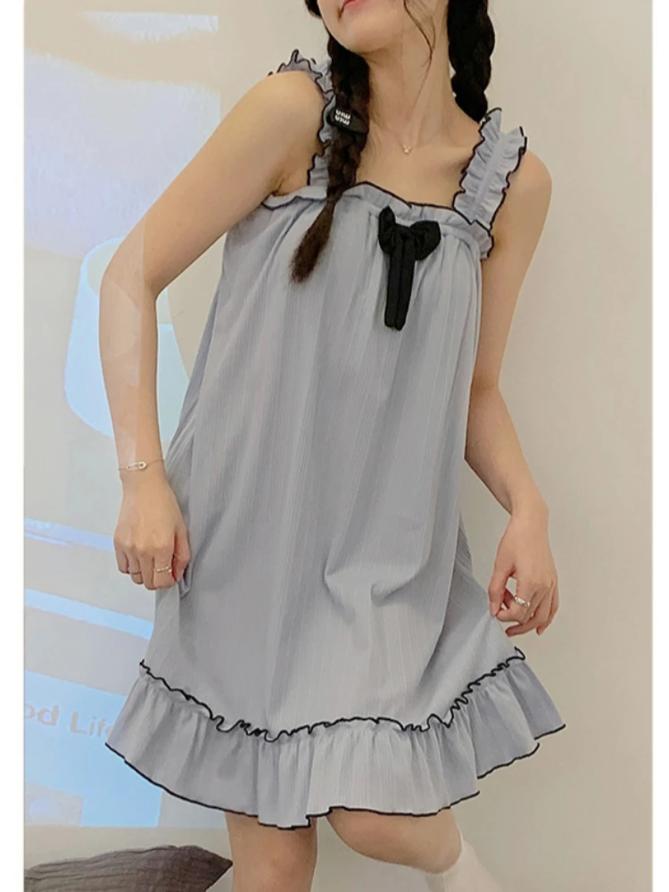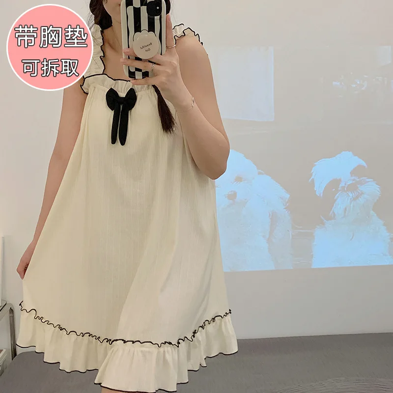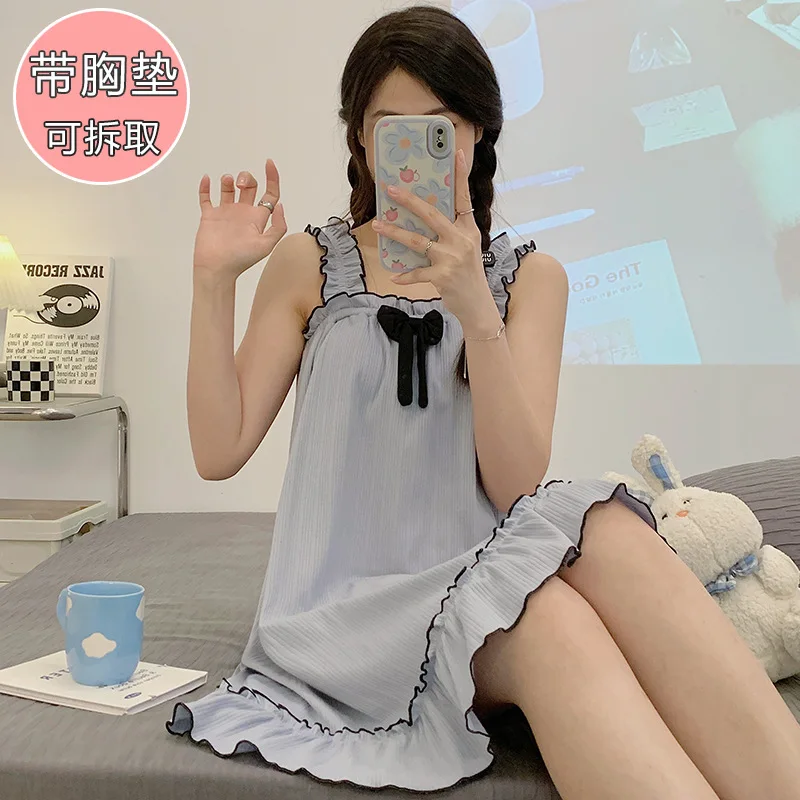 5XL حجم كبير فستان النوم الحمالة مع وسادة الصدر المرأة الصيف الحلو ثوب النوم يمكن ارتداؤها خارج ملابس المنزل الطالب اليابانيين