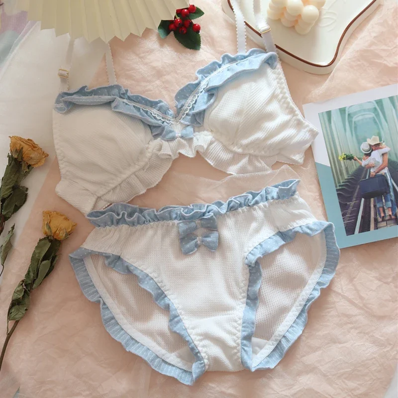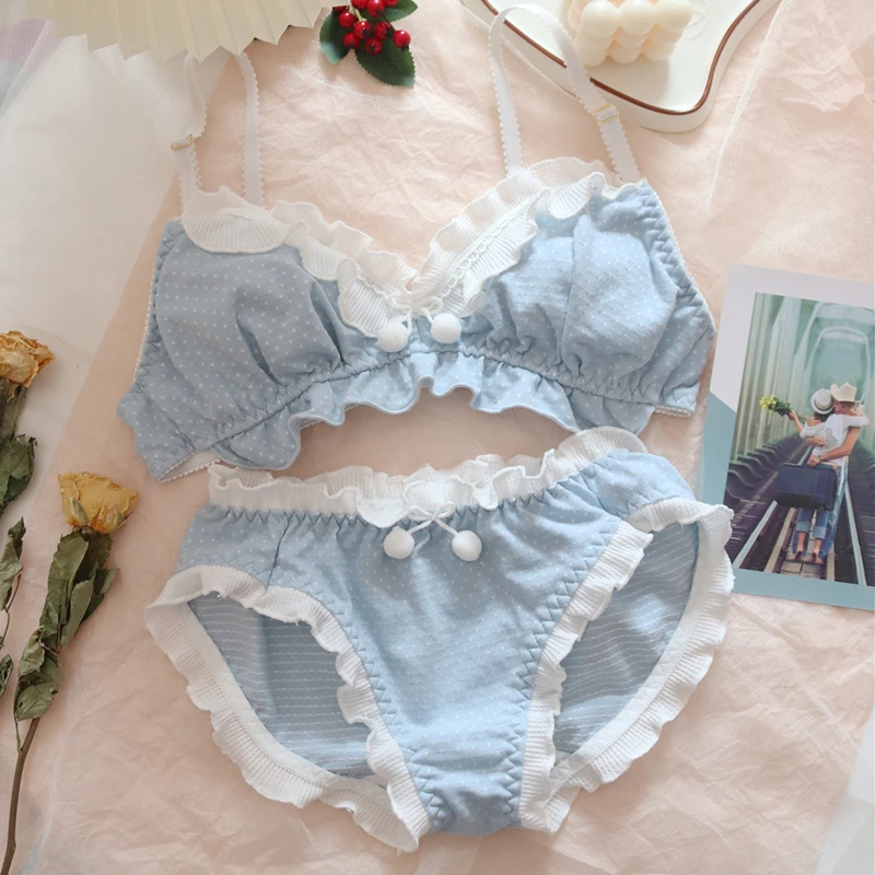 6 نمط الملابس الداخلية اليابانية مجموعة لطيف حمالة صدر وسراويل داخلية مجموعة القطن الشعر الكرة القوس الكشكشة Wirefree Kawaii لوليتا النساء النوم