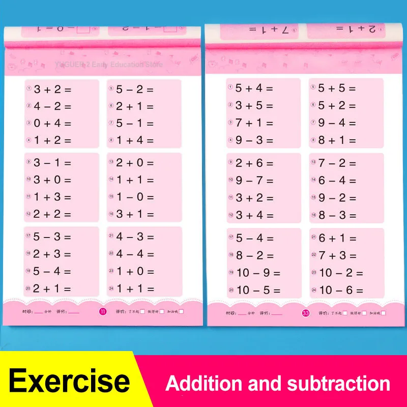 64 صفحة/كتاب الأطفال الجمع والطرح تعلم الرياضيات المصنف مكتوبة بخط اليد كتب التمارين الحسابية دفاتر الملاحظات
