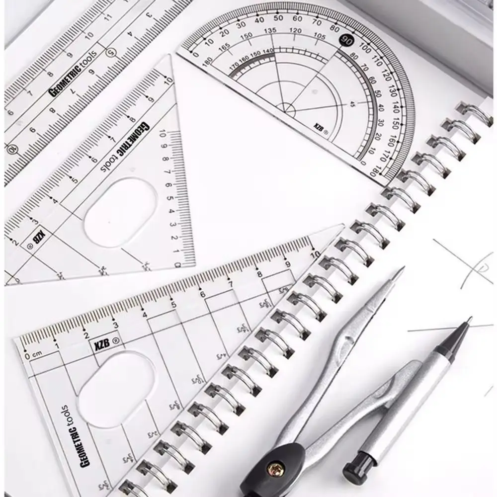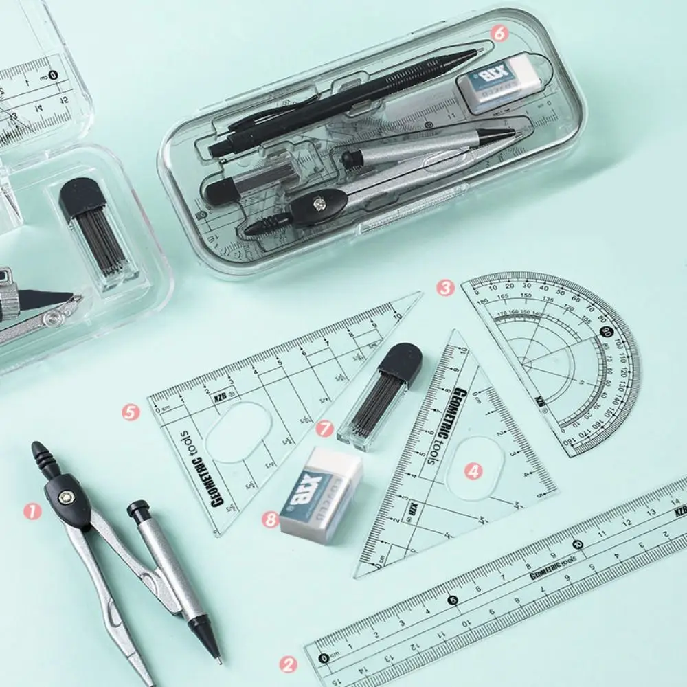 8 قطعة/المجموعة مبراة حاكم البوصلة مجموعة مسطرة قياس المنقلة قلم رصاص البوصلة عدة متعددة الوظائف مسطرة مستقيمة أداة الرسم