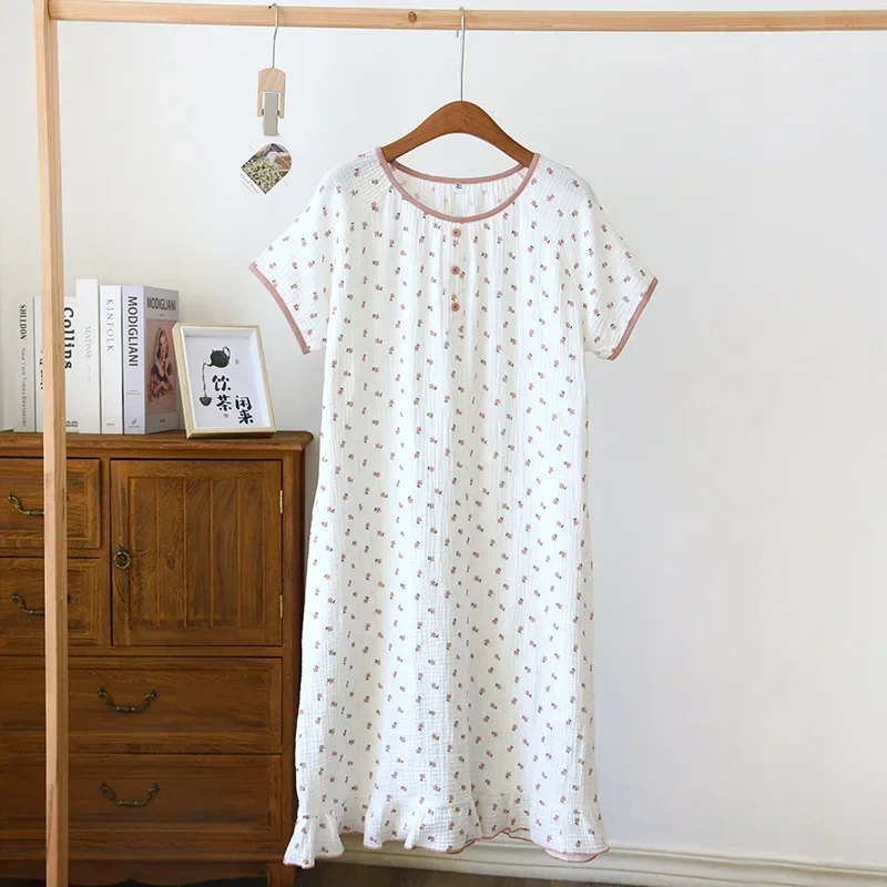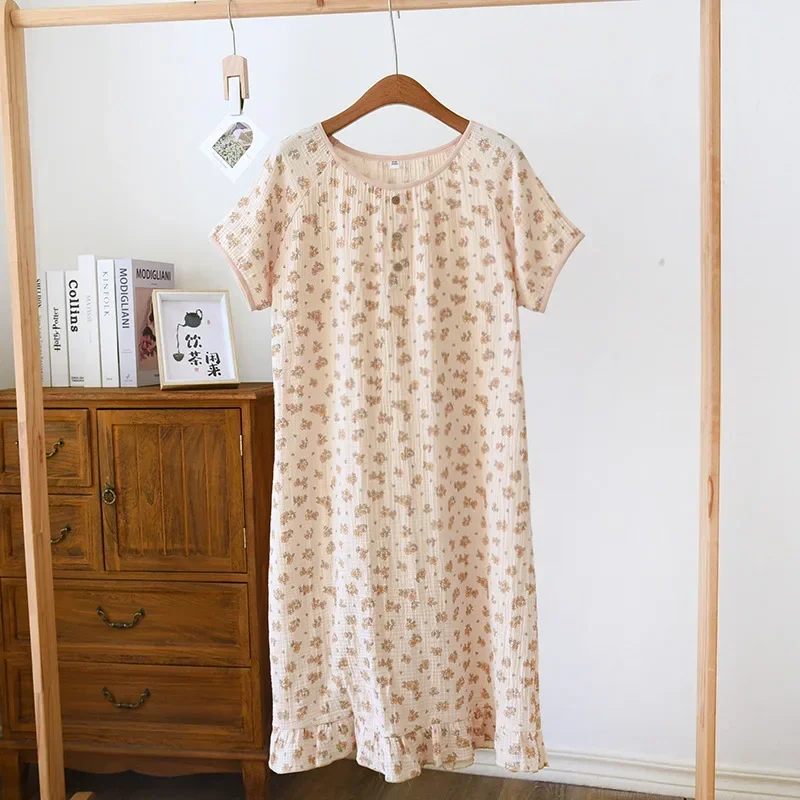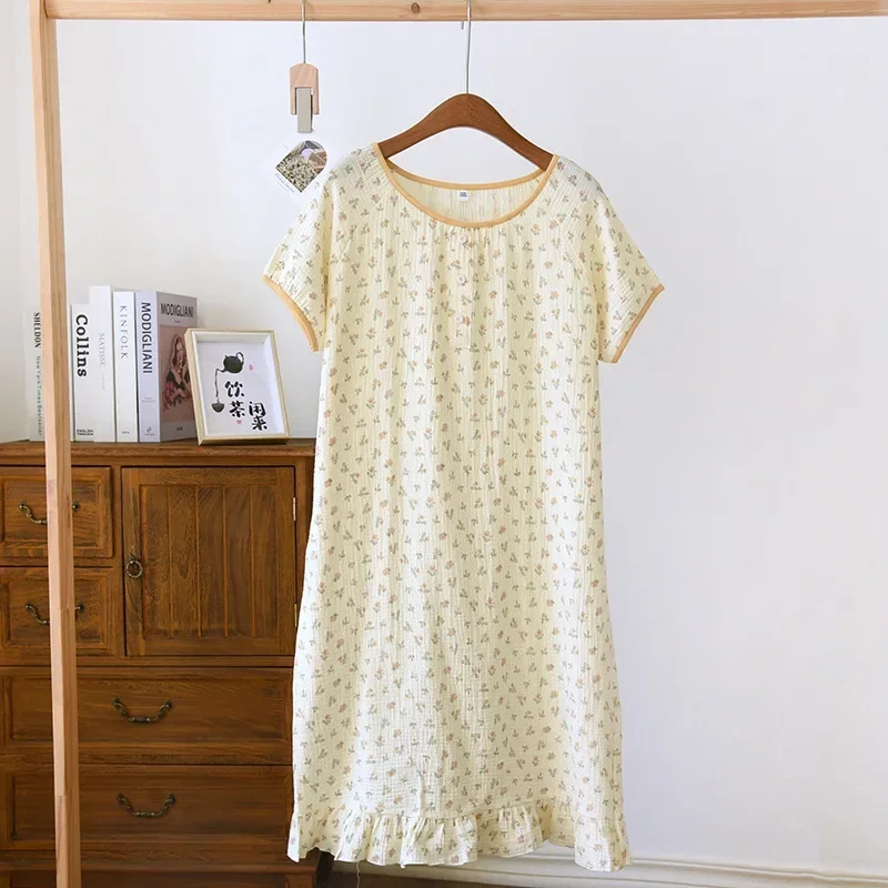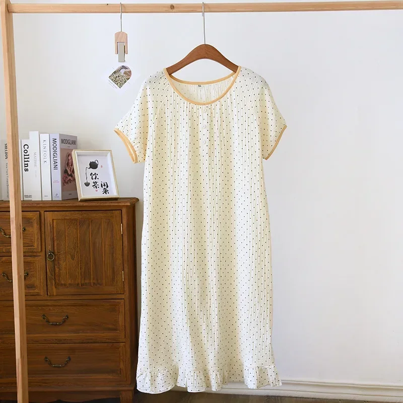 أحدث ملابس نوم نسائية صيفية فضفاضة بأكمام قصيرة، قمصان نوم لطيفة مطبوعة من القطن الرقيق، فستان نوم منزلي