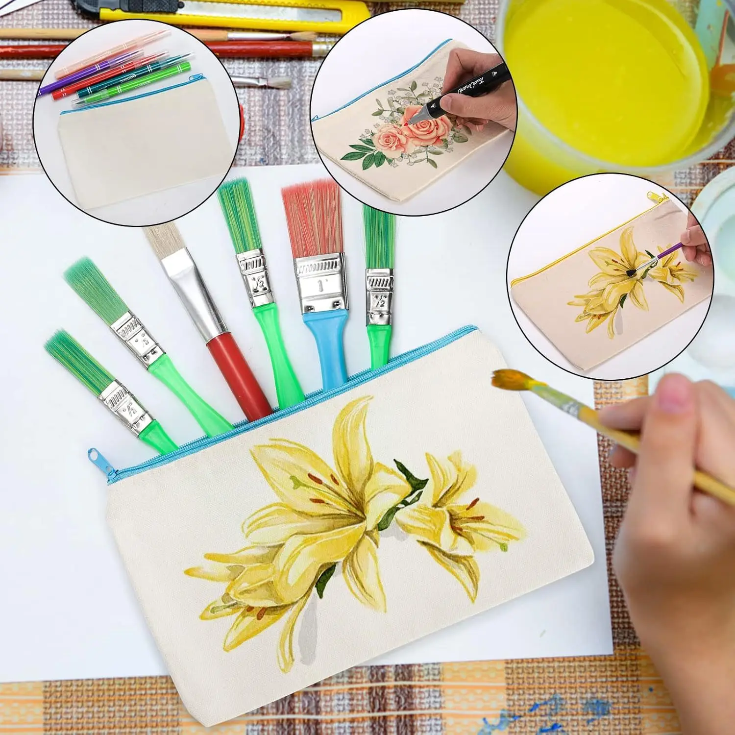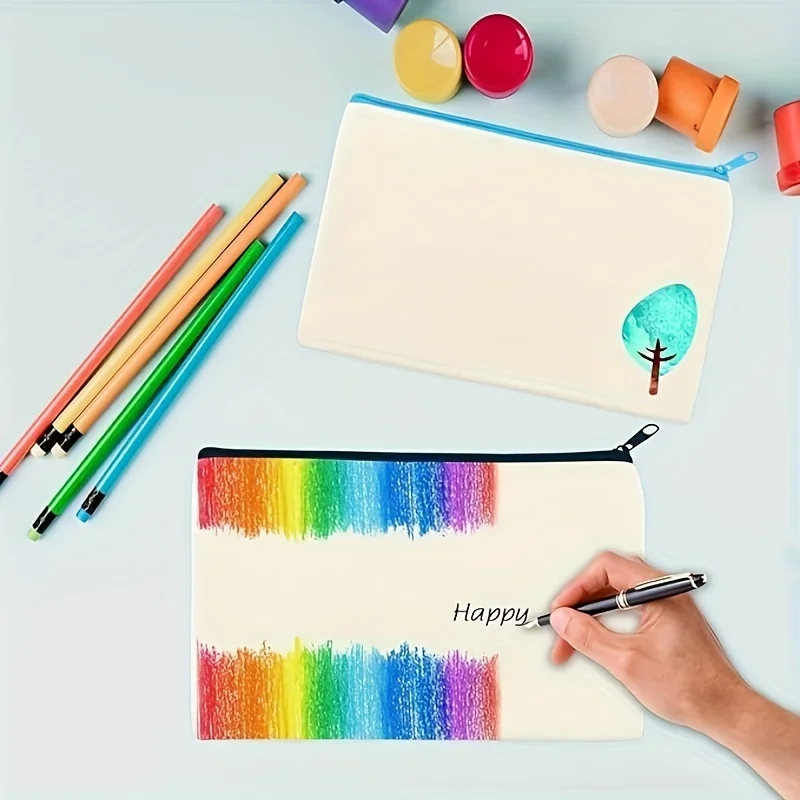 أكياس أكياس قماشية فارغة بسحاب - مقلمة من القماش المتين متعددة الألوان بسحاب للمدرسة والمكتب والسفر واللوازم الحرفية