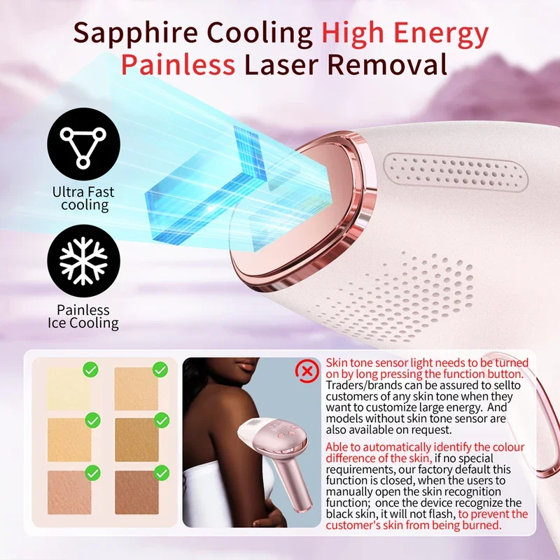 آلة إزالة الشعر العملية لتبريد الثلج، محمولة وغير مؤلمة، شحن لاسلكي للمنزل، إزالة شعر IPL دائمة
