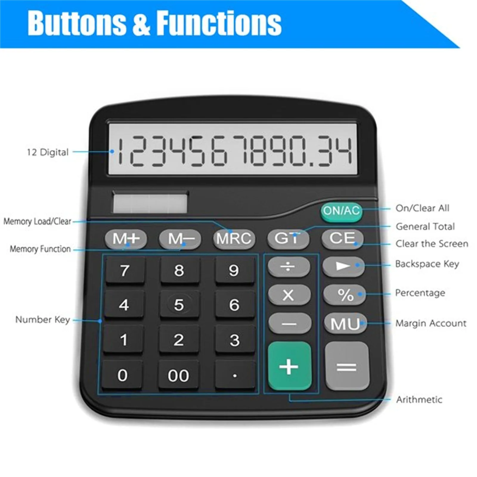 آلة حاسبة بشاشة LCD مكونة من 12 رقمًا لأغراض المحاسبة، آلة حاسبة ذات وظيفة قياسية، آلة حاسبة تعمل بالطاقة الشمسية لمكتب سطح المكتب