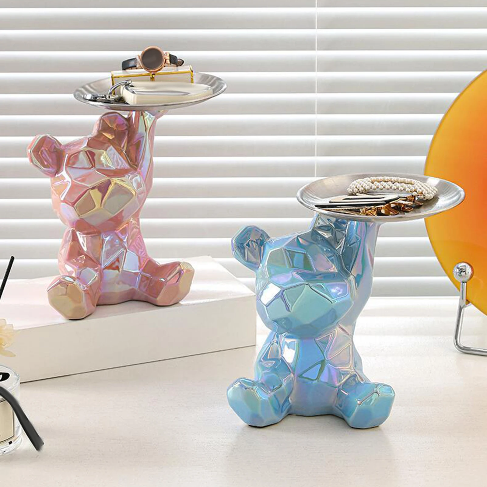 الإبداعية الراتنج الدب تمثال تمثال لطيف ديكور المنزل سطح المكتب صينية تخزين الرف للعملات وجبة خفيفة مكتب مدخل الهاتف