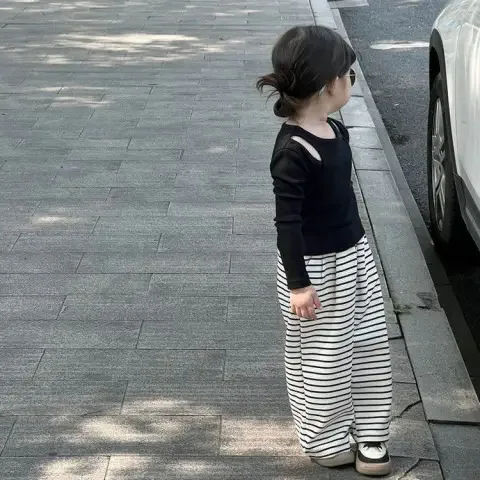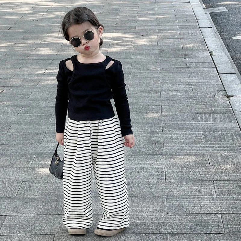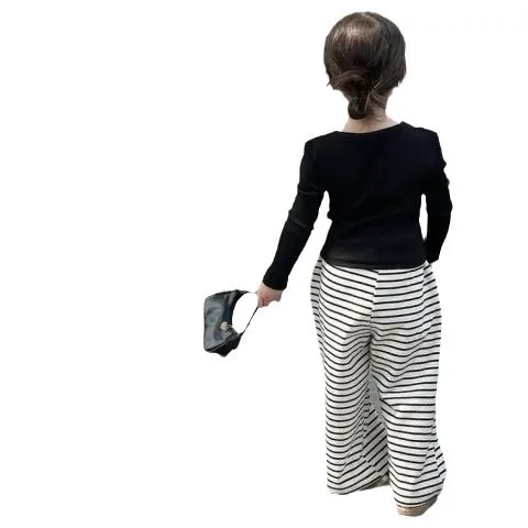 الأطفال الفتيات الخريف الفتيات قطعتين طويلة الأكمام عادية مخطط مستقيم بانت 2 قطعة مجموعة الملابس