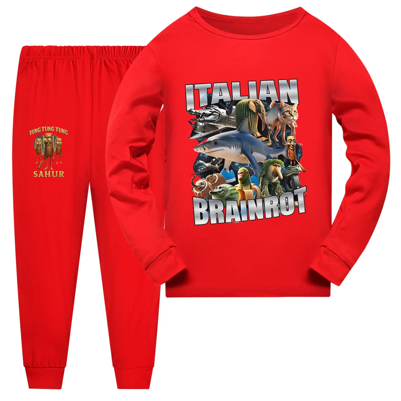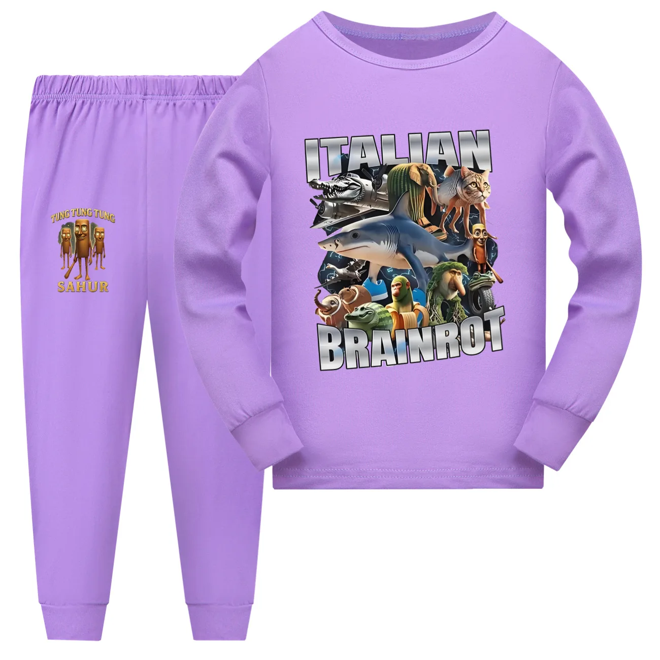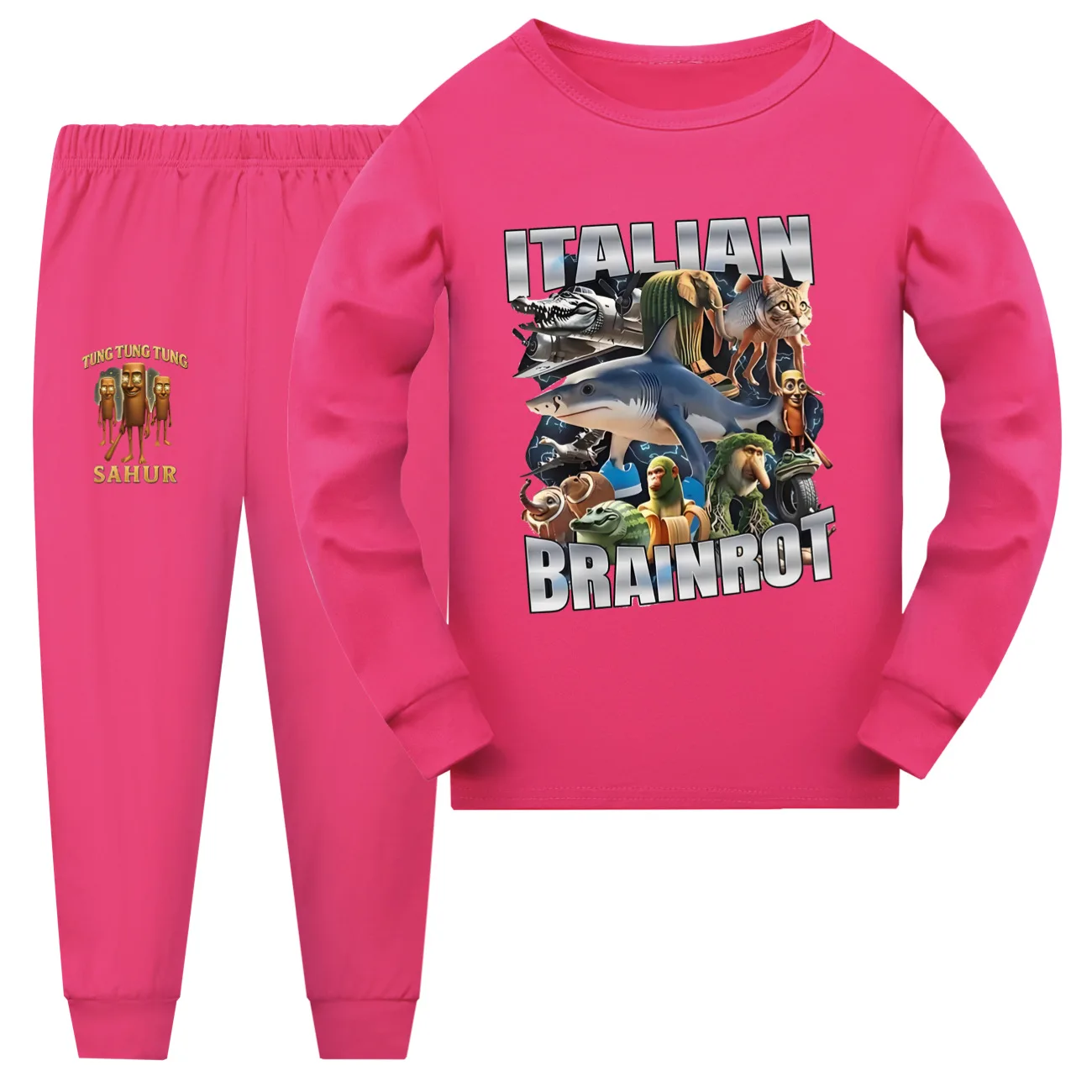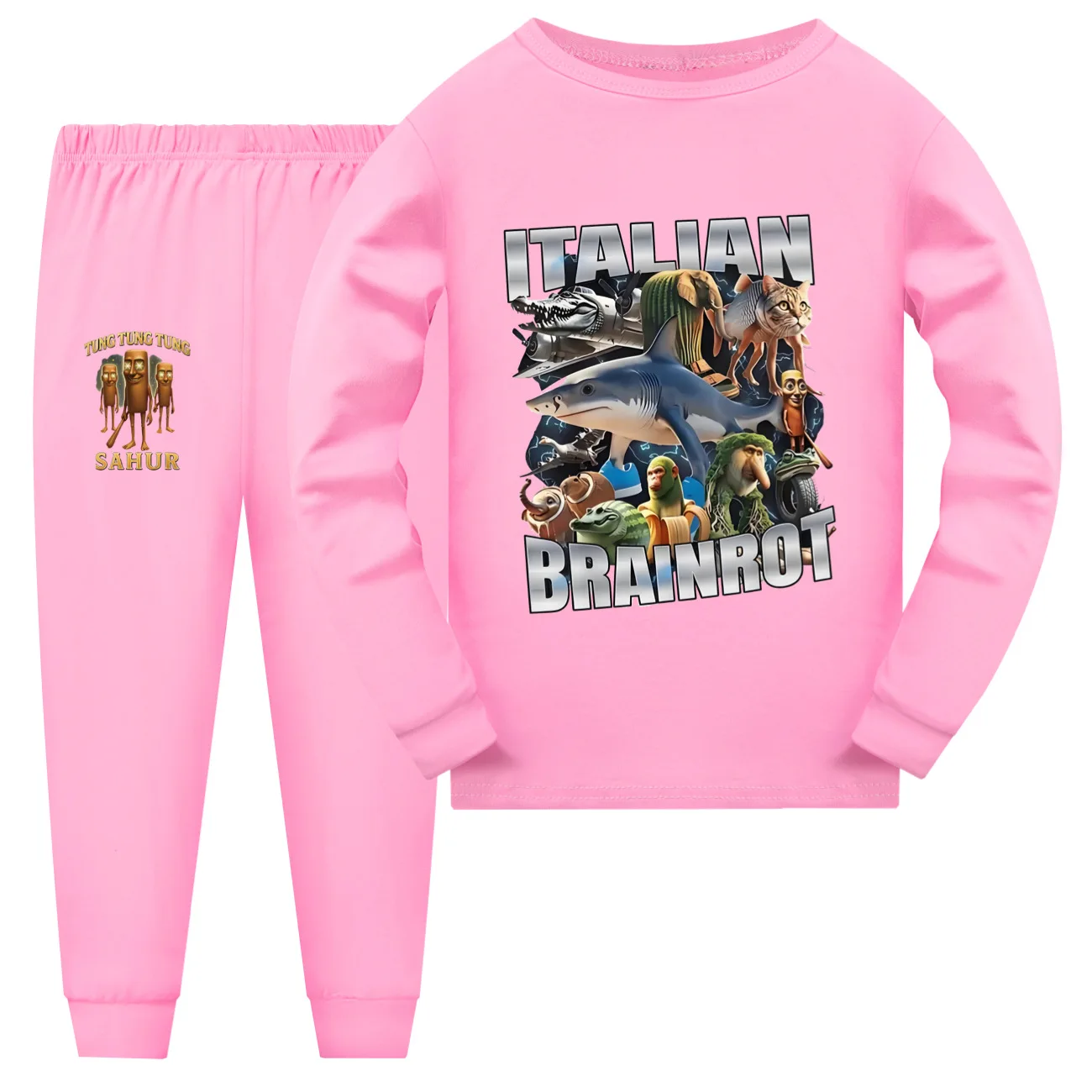 الإيطالية Brainrot ميمي ملابس الاطفال الكرتون تونغ صحور بيجامة مجموعات الفتيان طويلة الأكمام بلايز يغطي الرجل 2 قطعة مجموعة الفتيات ملابس خاصة غير رسمية
