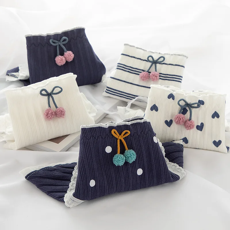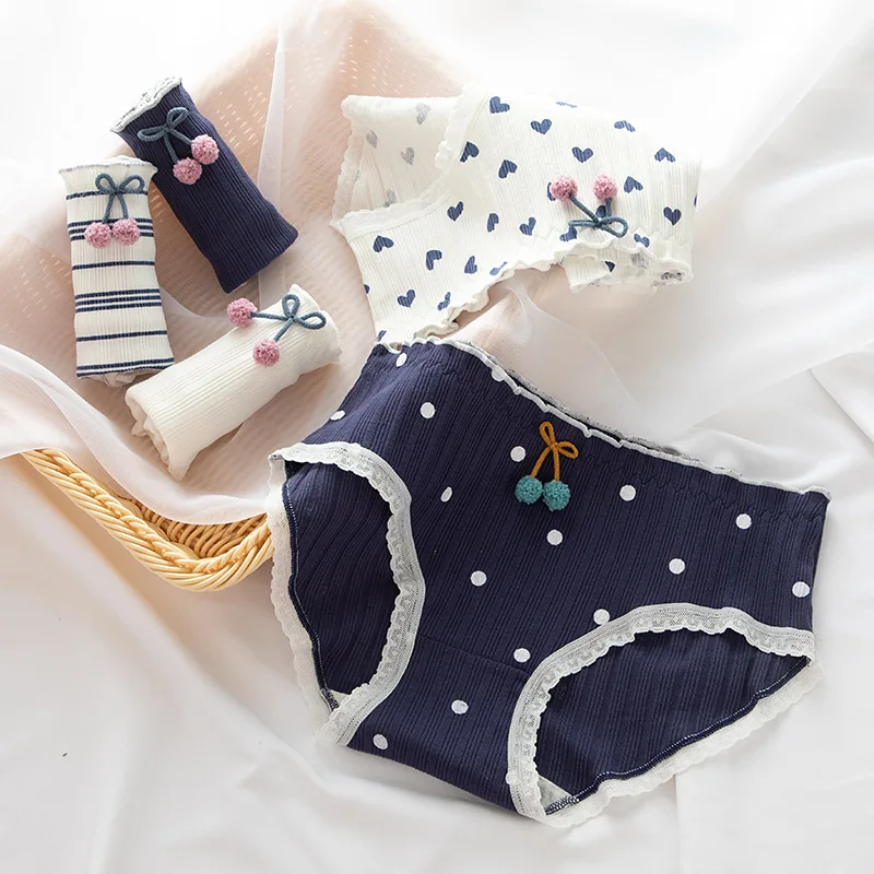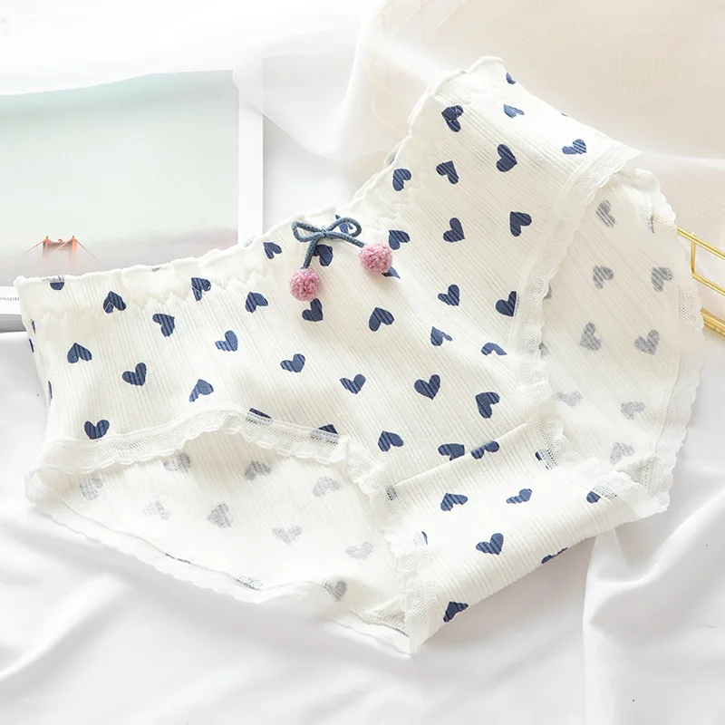 البحريه سراويل النساء الملابس الداخلية القوس لطيف طباعة موجز الفتيات الخصر الأوسط مثلث أعلى القطن داخلية