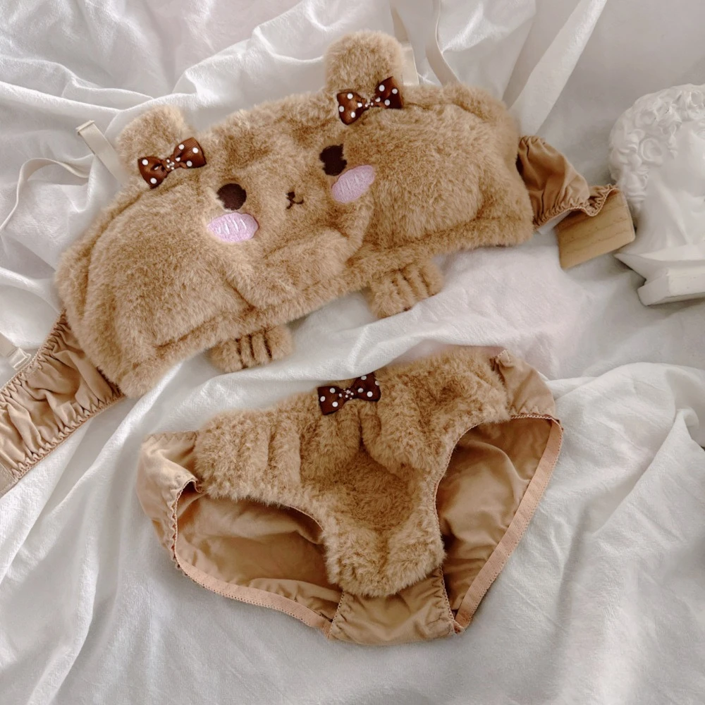 الدببة القطيفة الشتاء الدافئة الصدرية مجموعة فتاة يابانية لينة حلوة ولطيفة الكرتون اليقطين السراويل الطلاب أفخم مثير حمالات الصدر اللاسلكية رقيقة