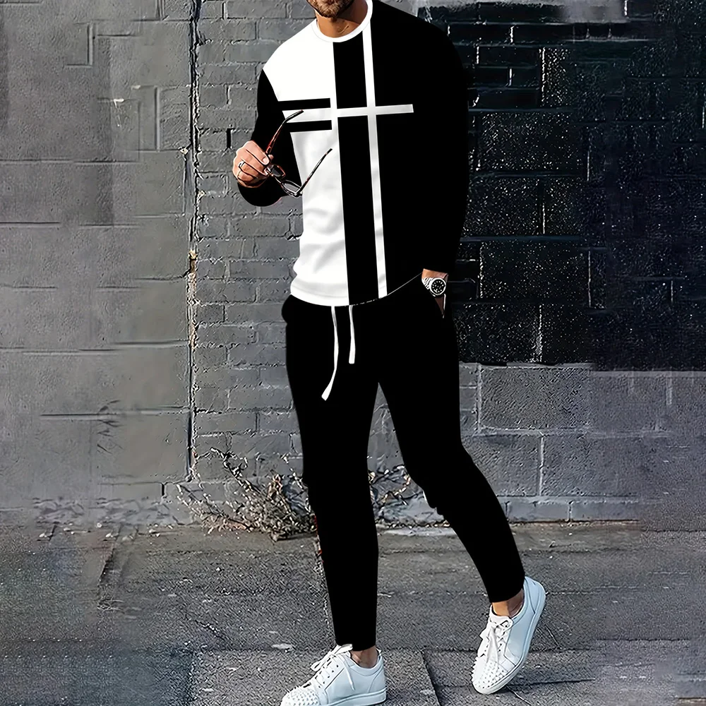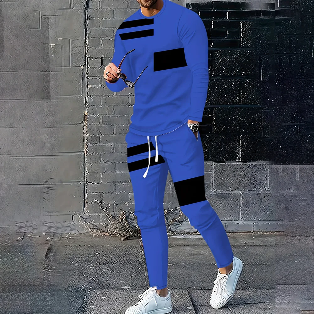 الخريف الرجال كم طويل البلوز البلوز 2 قطعة وتتسابق مخطط طباعة بلايز رياضية مجموعة الرباط الخصر عداء ببطء مجموعة