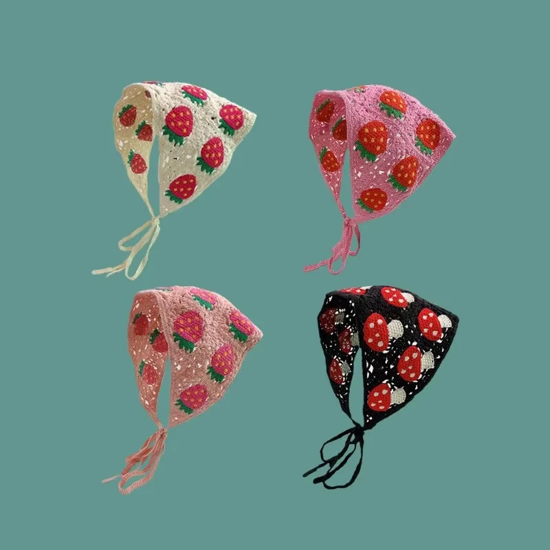الكورية الحلو لطيف اليدوية الكروشيه الجوف مثلث عقال منشفة للنساء الفتيات زهرة الحجاب إكسسوارات الشعر
