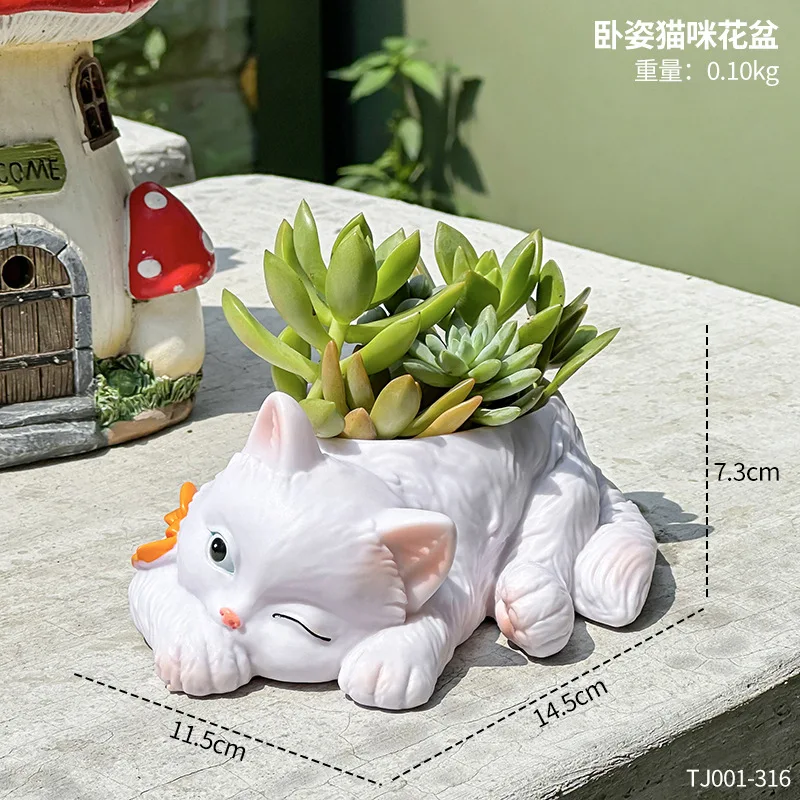 الكرتون القط الراتنج اناء للزهور زهور عصاري سطح المكتب الحيوان وعاء النبات حديقة الأواني لوازم حديقة بوتينغ الديكور
