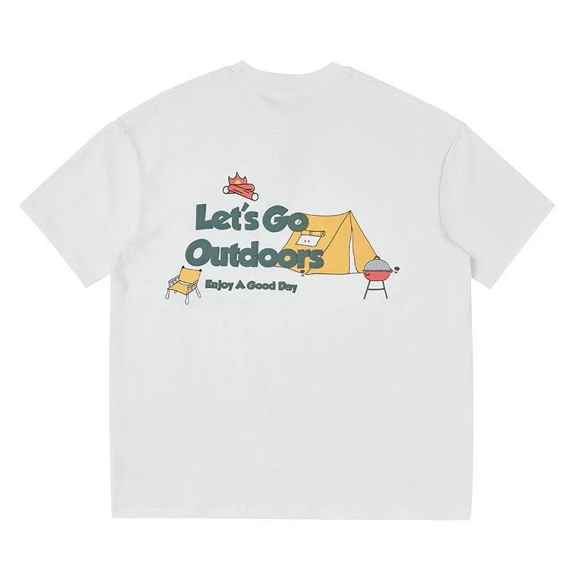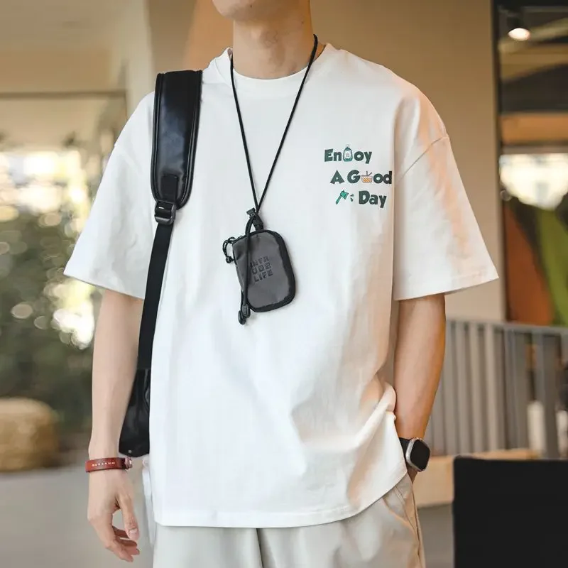 المألوف الرجعية الكورية رسالة مطبوعة قصيرة الأكمام تي شيرت الرجال عادية Y2K الصيف Ins فضفاضة شخصية نصف كم
