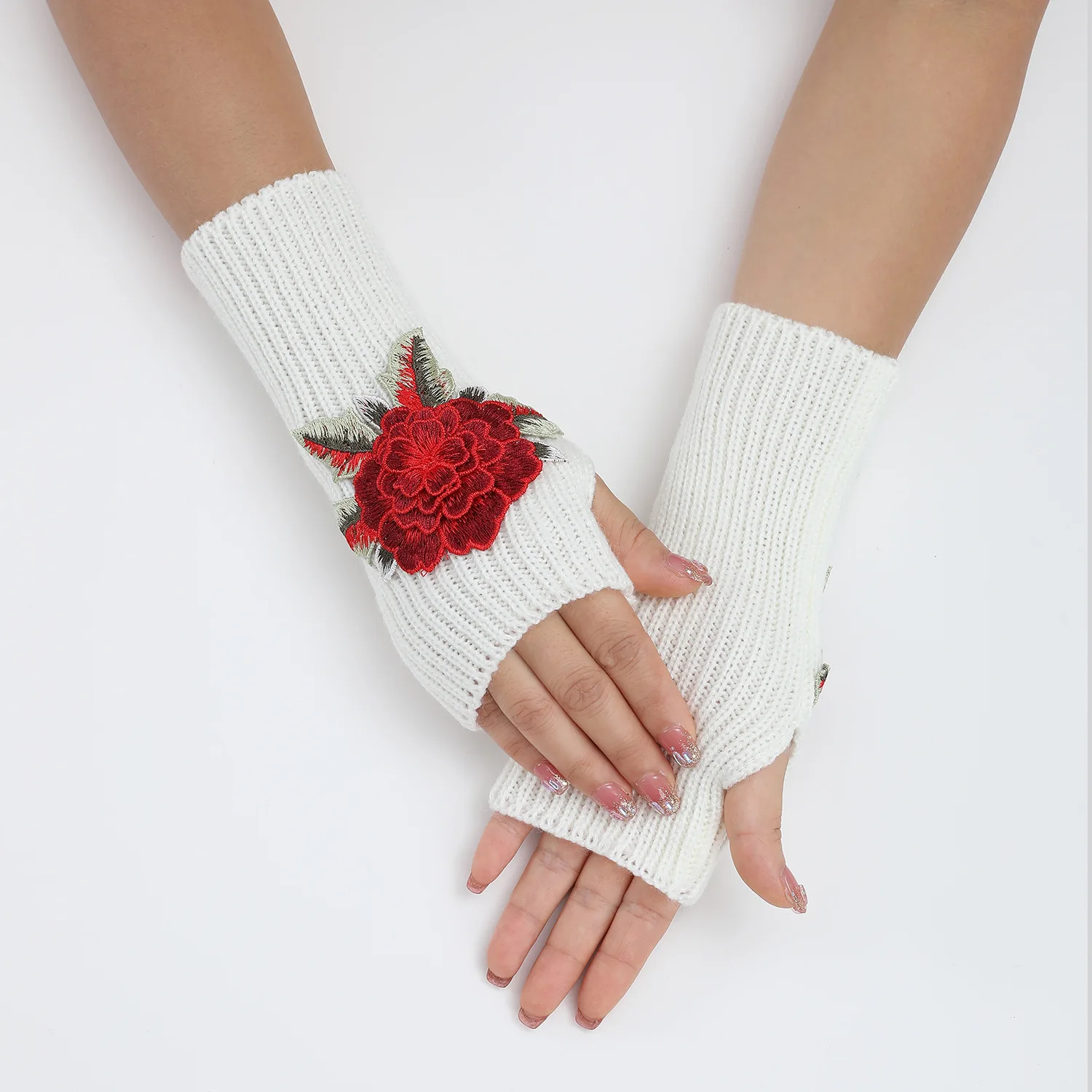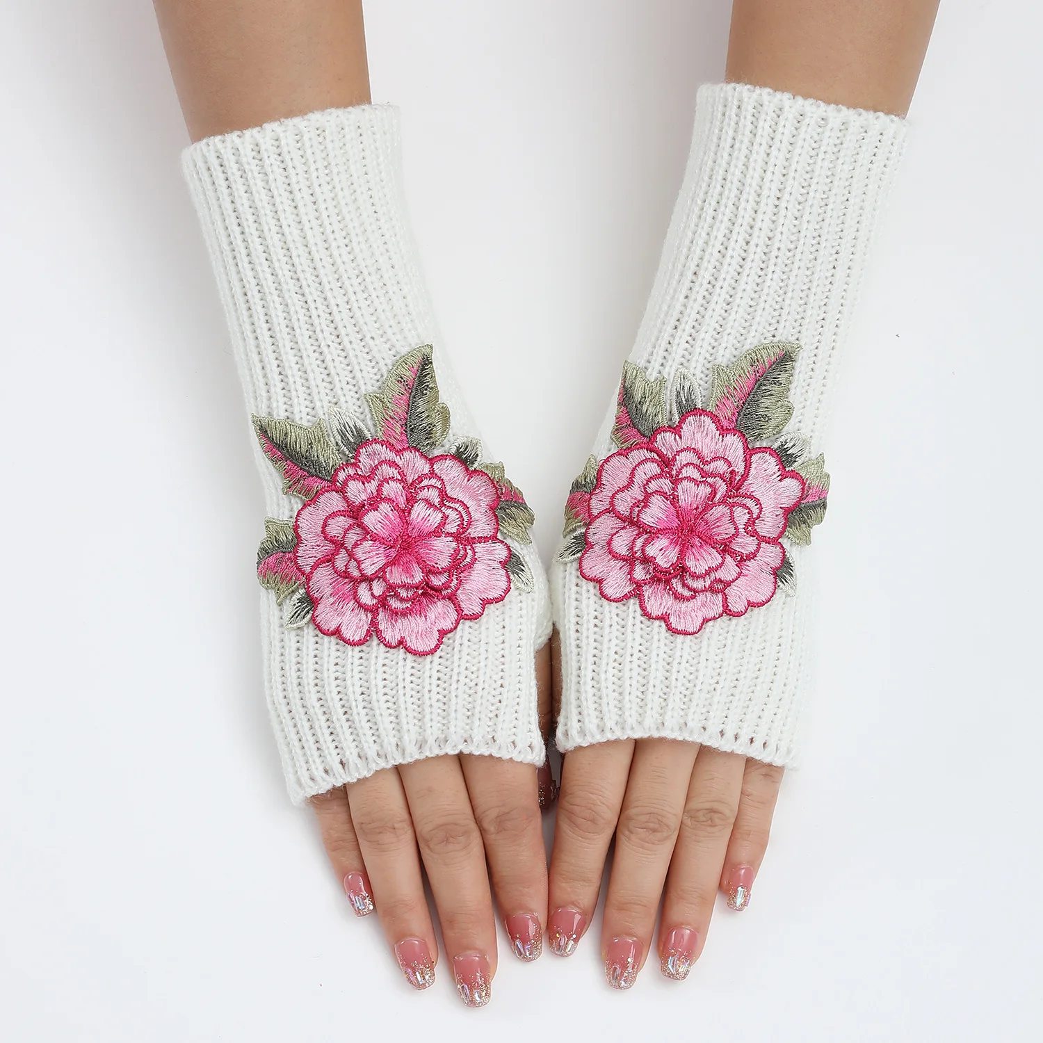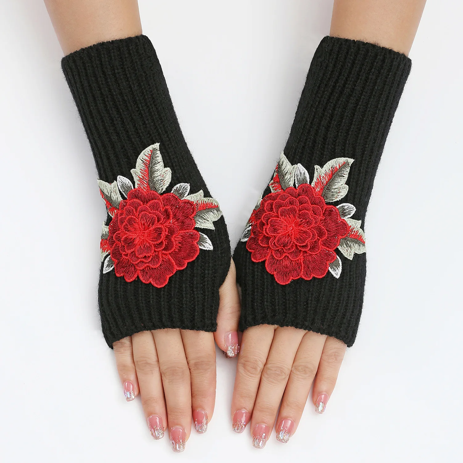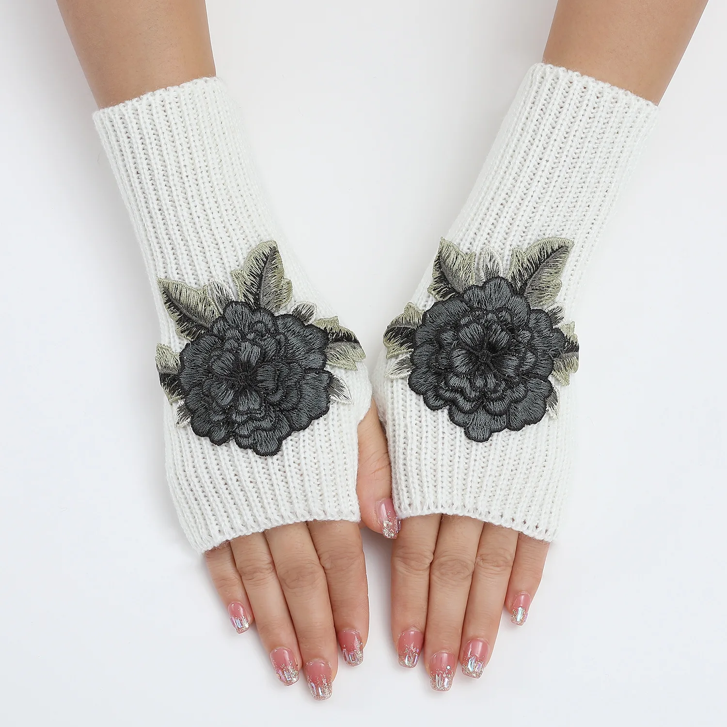 المرأة محبوك قفازات الصوف أصابع ، زهرة التطريز قفازات ، قصيرة سوار المعصم ، الدافئة ، أنيقة ، الخريف ، الشتاء ، جديد