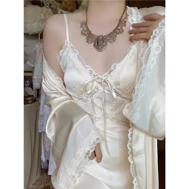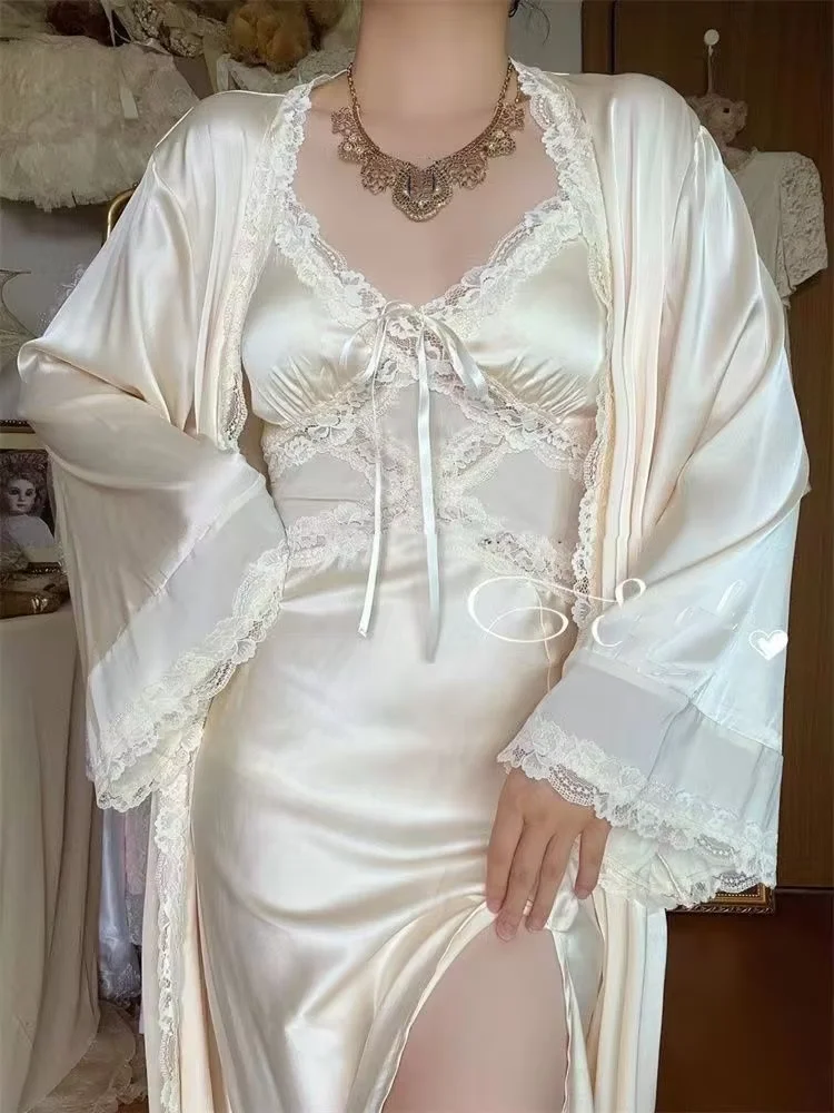 الربيع 2 قطعة مجموعات المرأة مثير فستان بحزام + معاطف عادية الكورية أنيقة طويلة سبليت فستان المرقعة الدانتيل خمر فستان البدلة Y2k