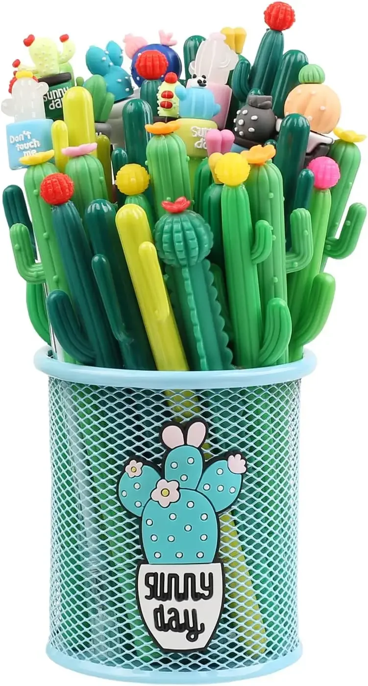 الصبار Kawaii هلام القلم مجموعة للأطفال ، لطيف النبات ، الإبداعية ومضحك ، مكتب ديكور ، القرطاسية ، المدرسة والمكتب التموين ، النساء والفتيات ، 24 قطعة