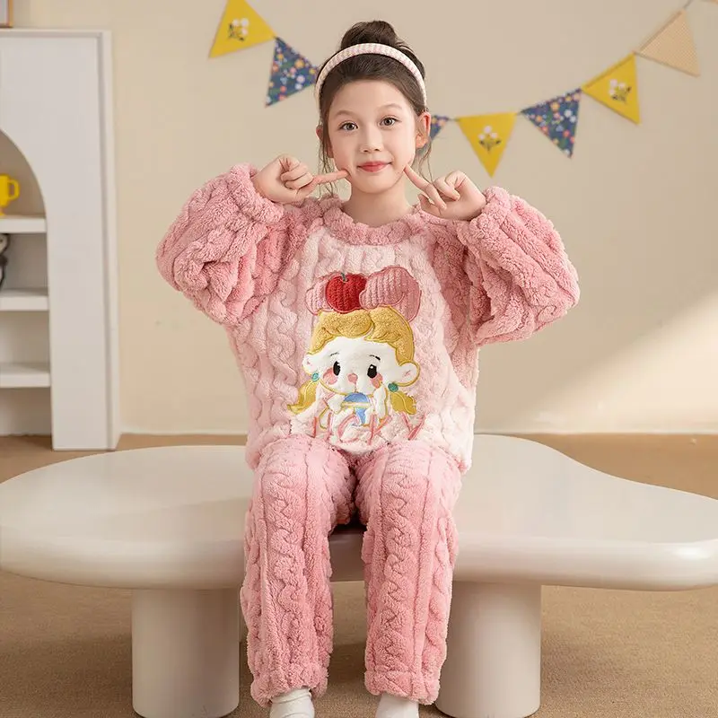 الشتاء الاطفال الفتيان منامة مجموعات الدافئة منامة في سن المراهقة الفتيات ملابس خاصة الفانيلا الصوف في سن المراهقة ملابس الأطفال ملابس المنزل