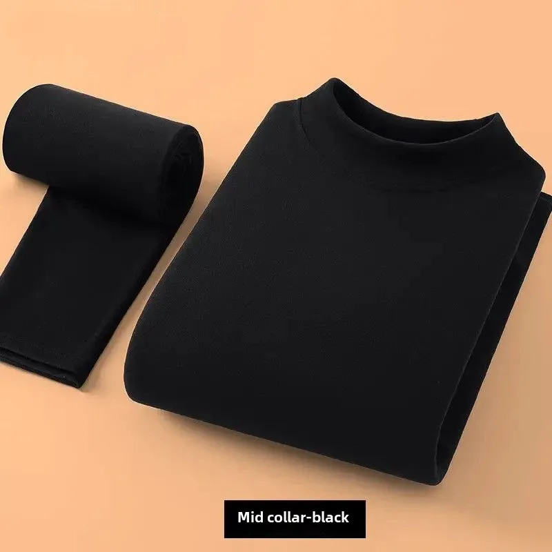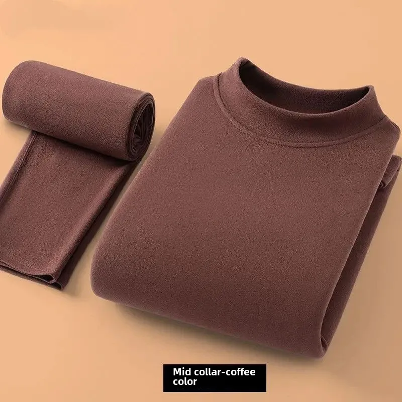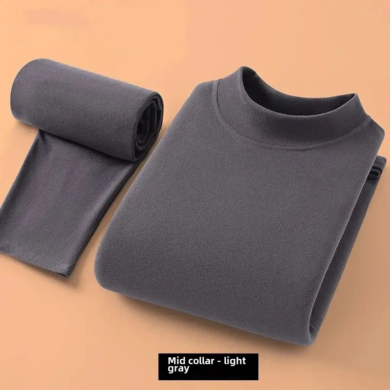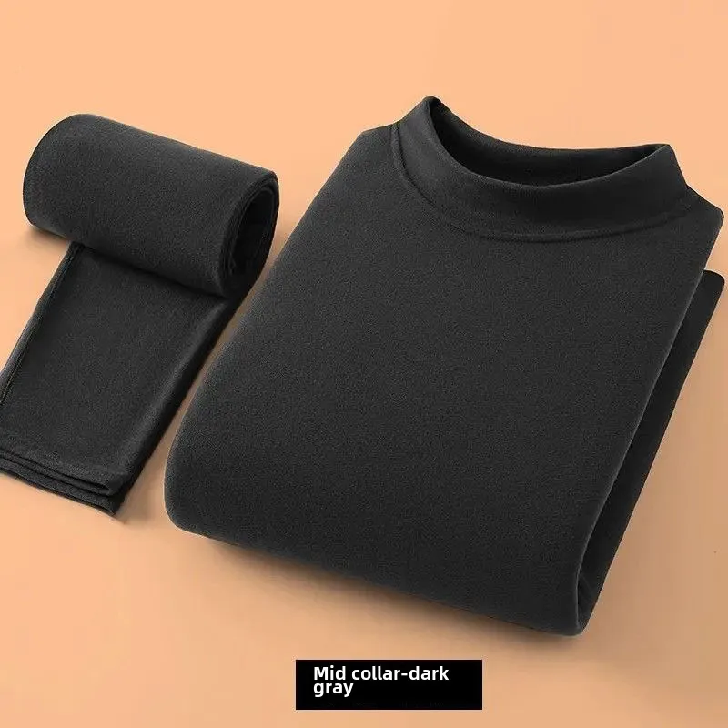 الشتاء بلوزات وسراويل مجموعة ملابس المنزل الدفء عادية الرجال جلد عالية طوق الملابس الداخلية الحرارة المخملية التي مجموعة