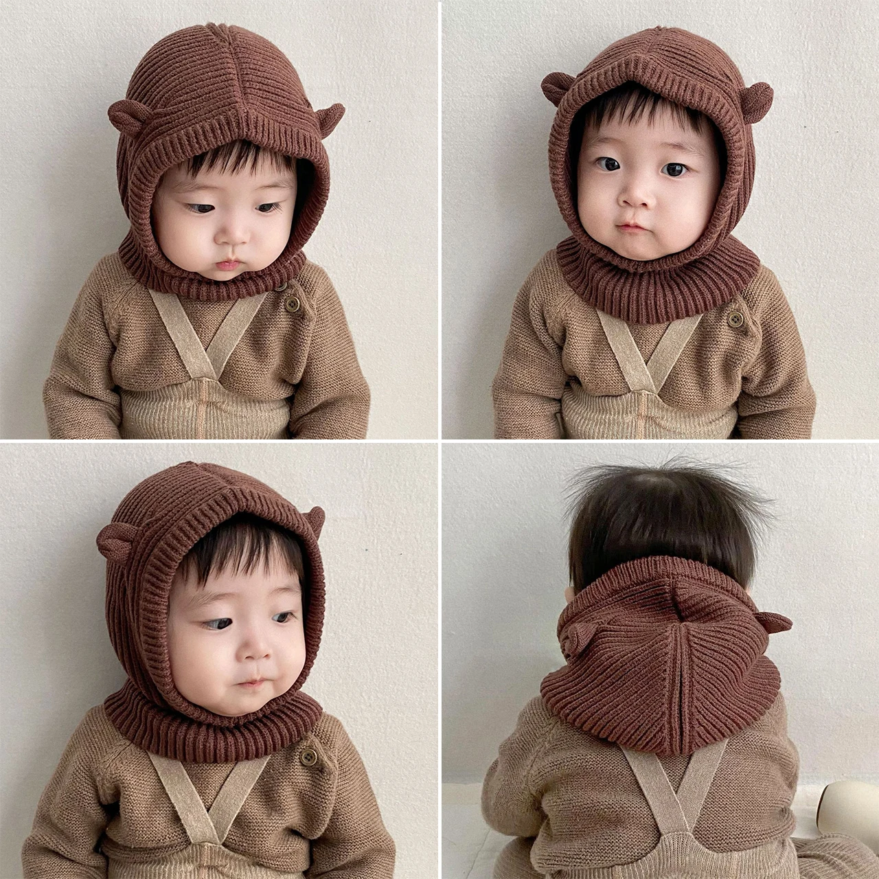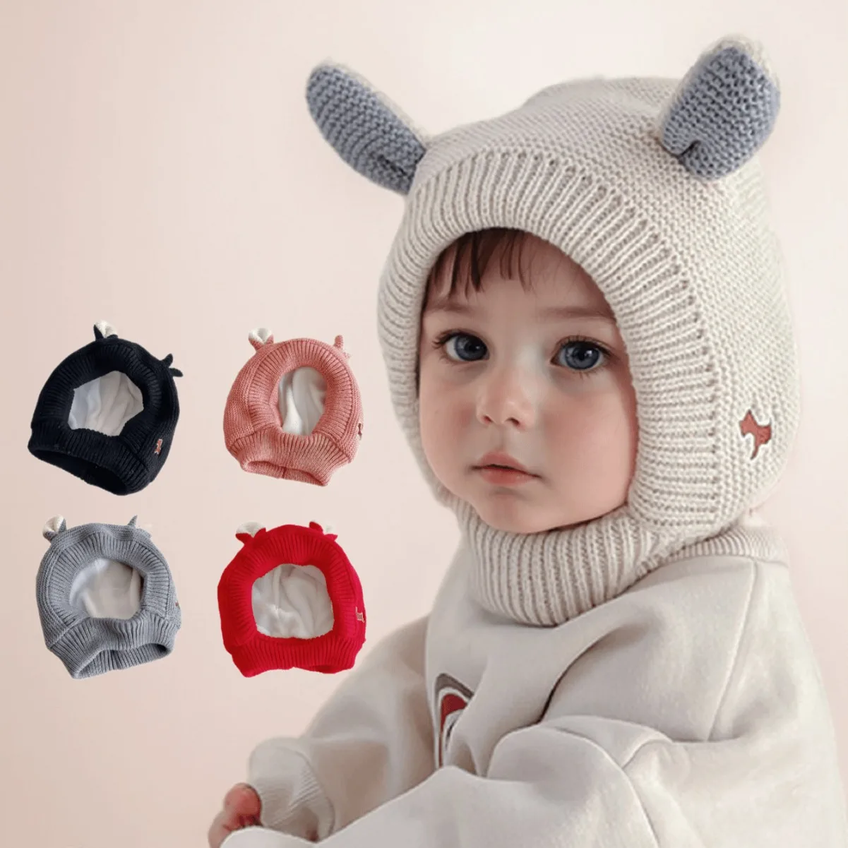 الشتاء متماسكة قبعة بالاكلافا للطفل لطيف الكرتون قطعة واحدة وشاح قبعة الاطفال سميكة الدافئة سدادات حماية الأذن قبعات بيني الصوفية