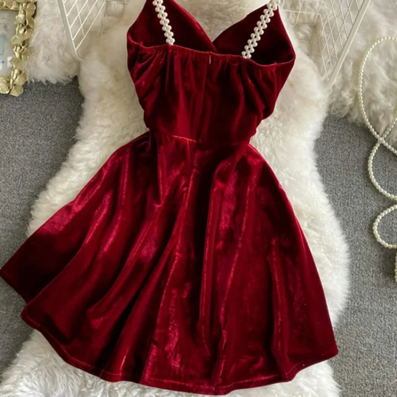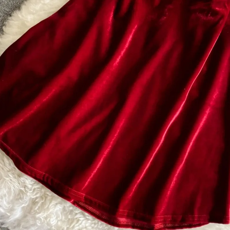 الصيف فستان بحزام المرأة الأحمر المخملية ألف خط فستان سهرة صغير خمر قبالة الكتف الفاخرة Y2K قطعة واحدة الفساتين الملابس 2025 جديد