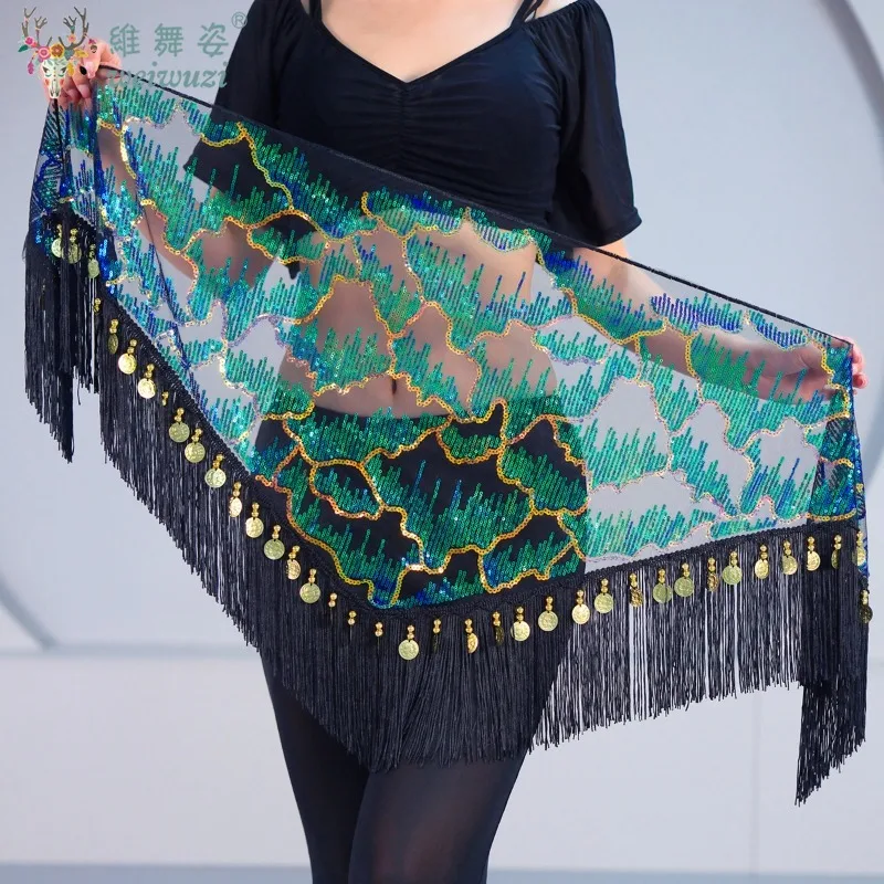 أنيقة أداء الرقص الشرقي الترتر شرابة الخصر وشاح الورك مثلث وشاح الإناث الرقص الشرقي ممارسة التفاف تنورة الملابس