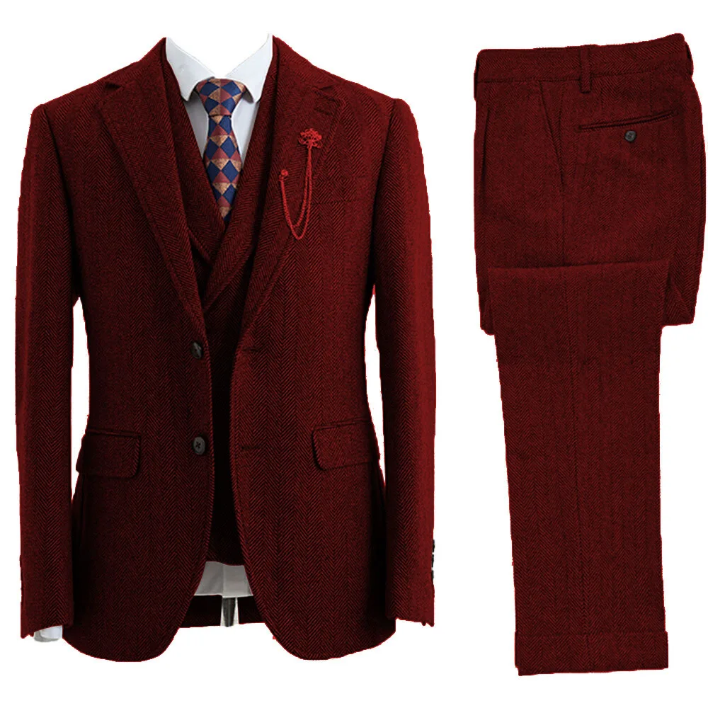 أنيقة الدعاوى للرجال 3 قطع الرجال بدلة تويد الدعاوى الذروة التلبيب سهرة الدعاوى للرجال السترة سترة وسراويل مجموعة فساتين الزفاف