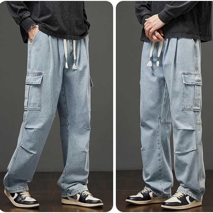 أزياء العلامة التجارية الجينز للرجال الخريف والشتاء جديد فضفاض عارضة الرياضة مستقيم الساق N السراويل للرجال