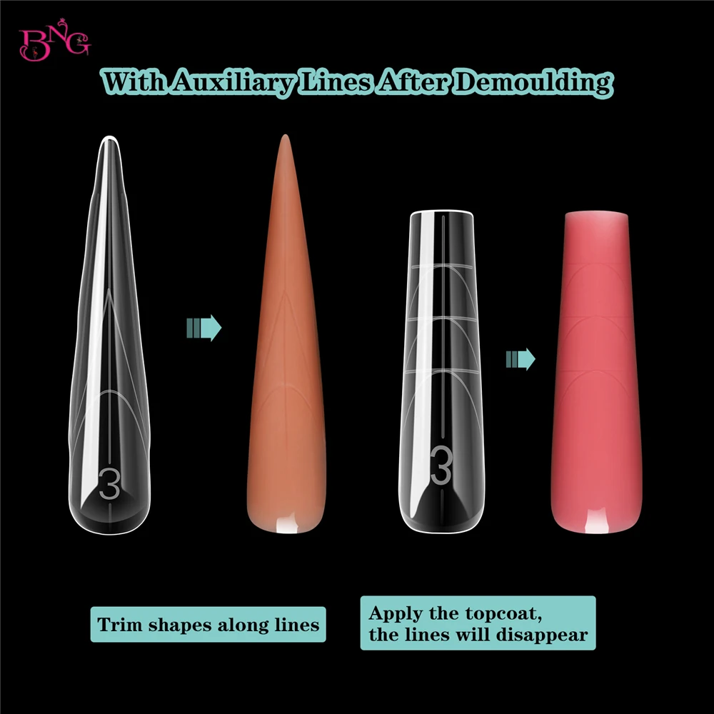 BNG فراشة مسمار أشكال مزدوجة مع خطوط مقياس داخلي بناء سريع هلام الاكريليك وصلات لإطالة الأظافر عدة أدوات الأظافر 150 قطعة