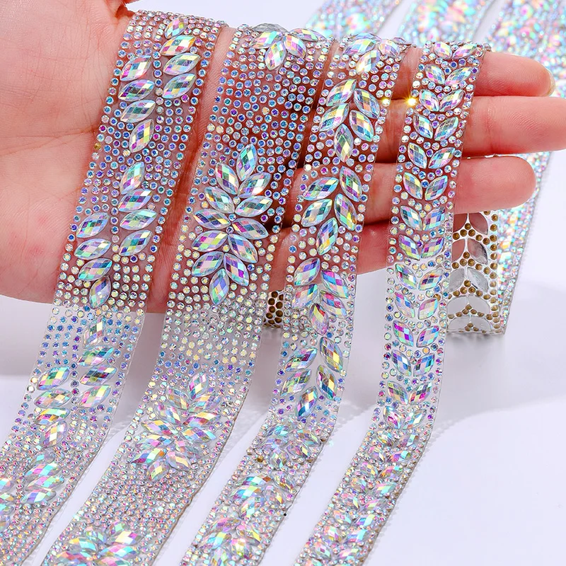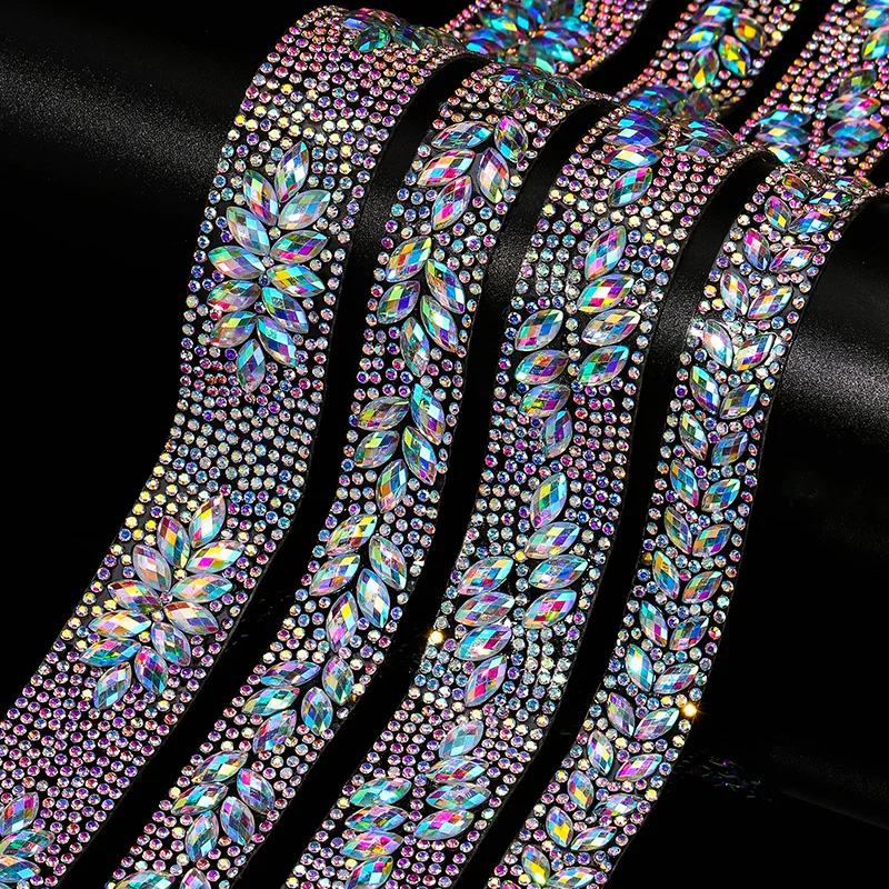Ducrystal 1 ياردة عزر سلسلة حجر الراين AB لون الحصان العين كريستال حجر الراين الشريط DIY بها بنفسك الأحذية والحقائب والفساتين الديكور