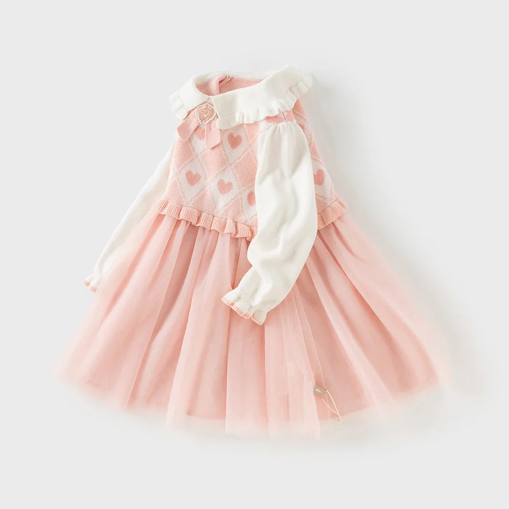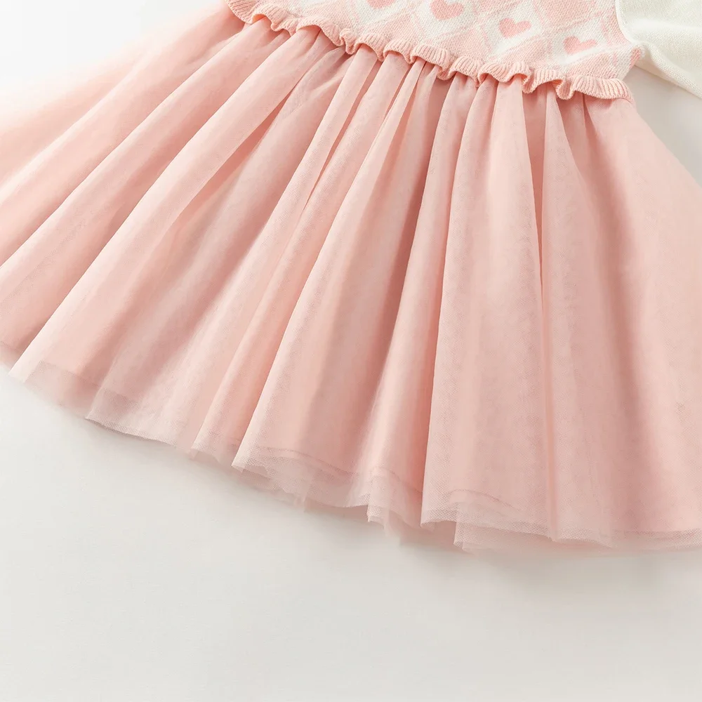 ديف بيلا الأطفال سترة فستان الخريف لطيف الحلو لطيف الفتاة طفل الحب طباعة الوردي فستان شبكي حفلة في الهواء الطلق DB3253507