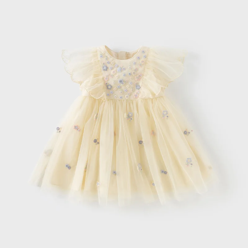 ديف بيلا الصيف الفتيات فستان الأميرة سحر أنيق لطيف شبكة مطرزة فستان زهري حفلة لطيف في الهواء الطلق DB 2250967