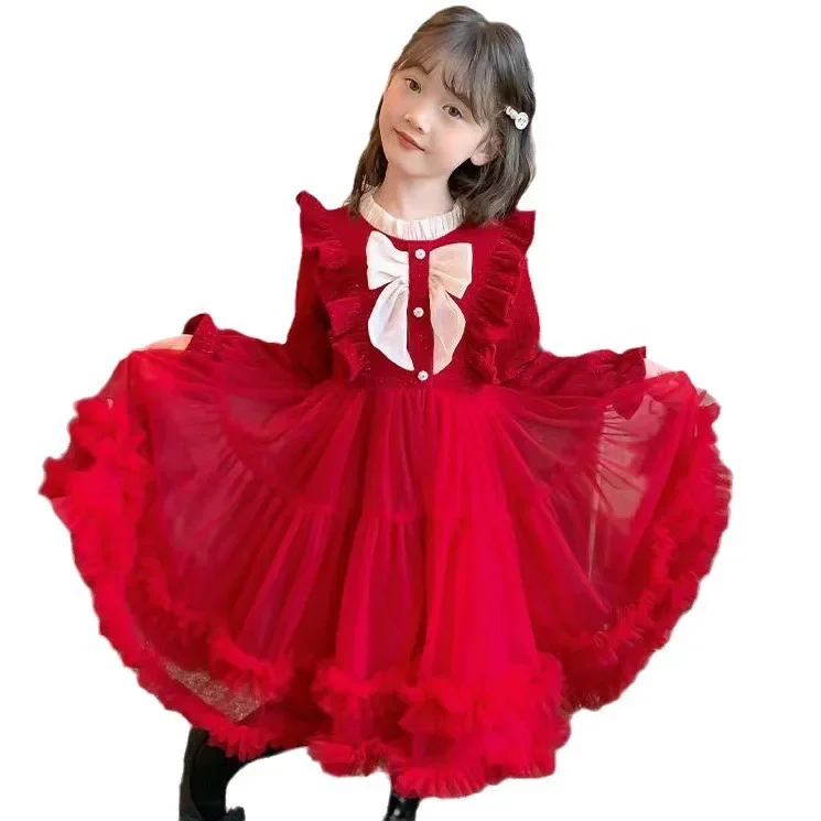 فستان بناتي على طراز الأميرة لخريف وشتاء ملابس أطفال عصرية تنورة منتفخة للفتيات الصغيرات مجموعة جديدة