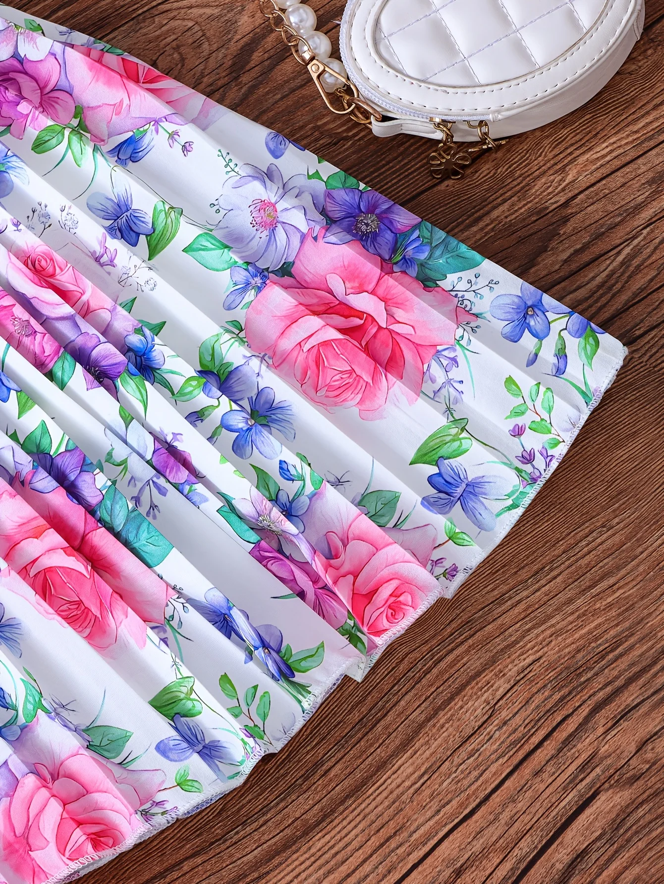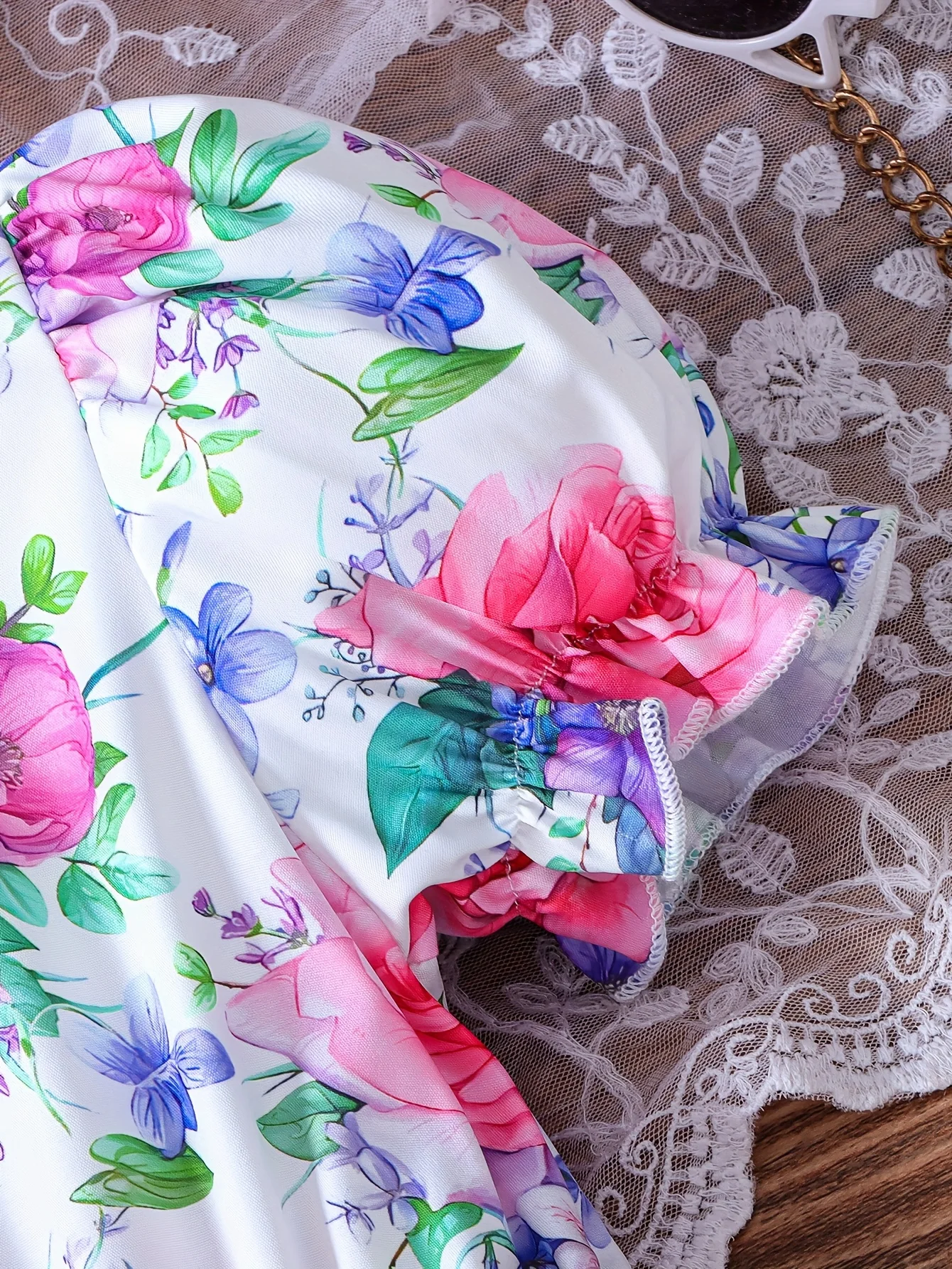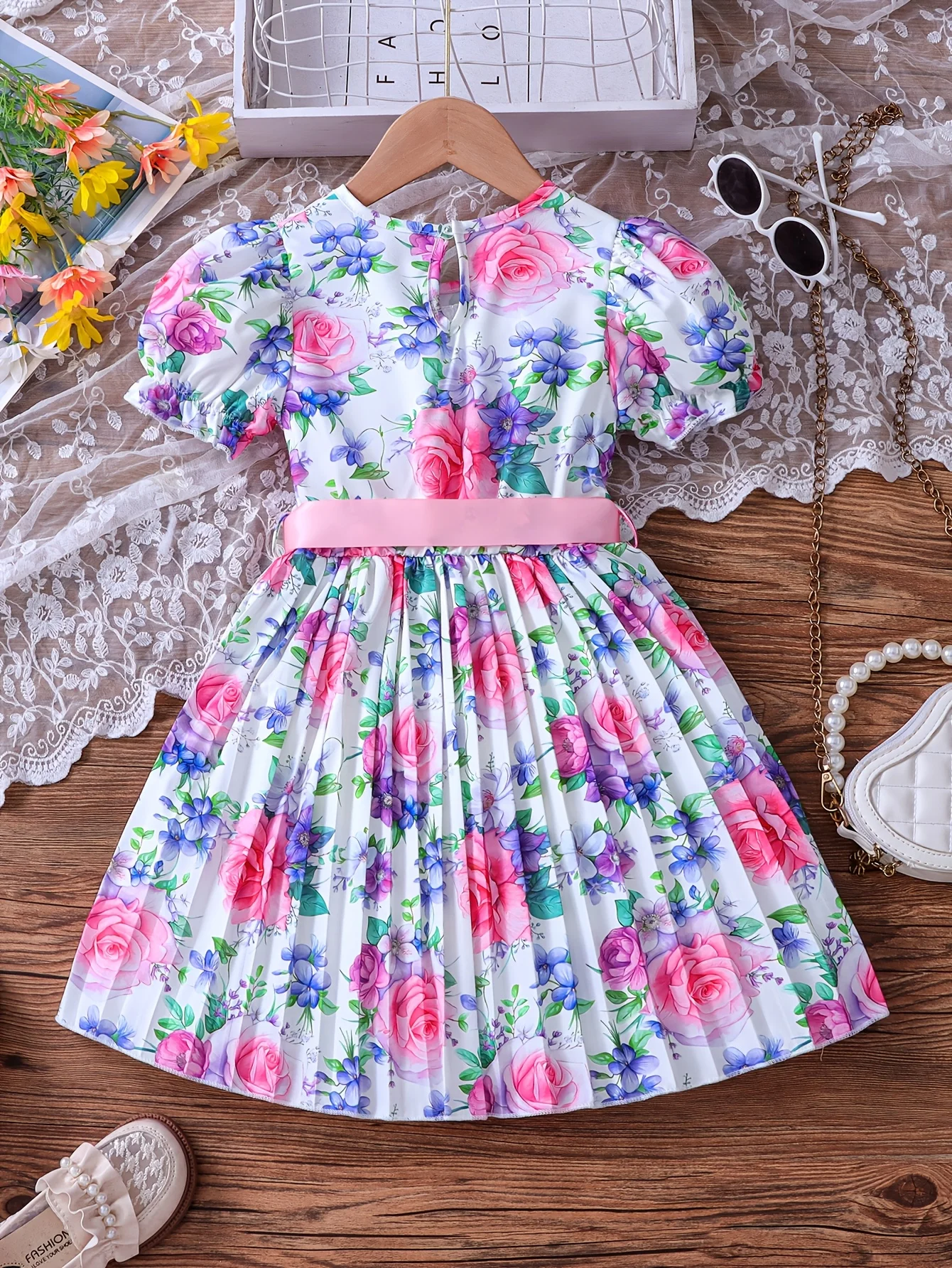 فستان بناتي صيفي بنمط زهور لطيف بأكمام منتفخة وحزام مطوي مناسب للخروج والعطلات والحفلات والمناسبات المختلفة