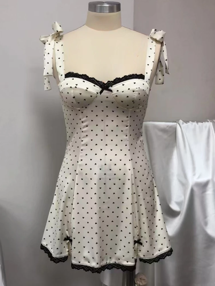 فستان نوم عتيق بياقة مربعة فستان نوم منقط للنساء ملابس نوم صيفية بخصر نحيف فستان نوم بحمالات من الخلف