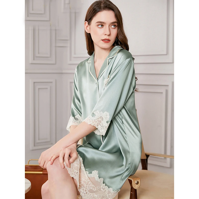 فستان نوم حريري 100 من FImtairah فستان نوم طويل من الدانتيل فستان نوم كوري ناعم على الموضة ماركة فاخرة للسيدات قمصان نوم من الحرير الحقيقي للنساء