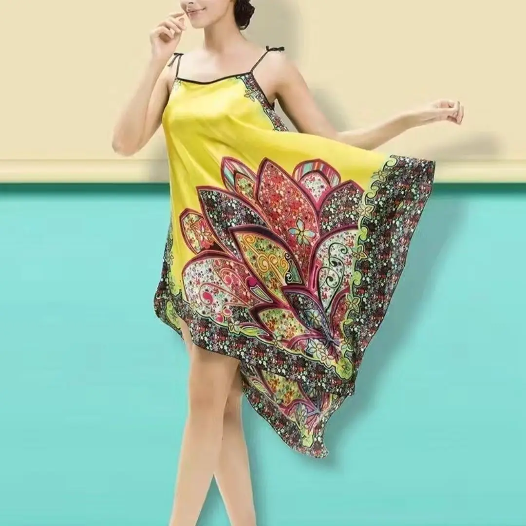 فستان نوم نسائي من الحرير المقلد مطبوع سهل الارتداء