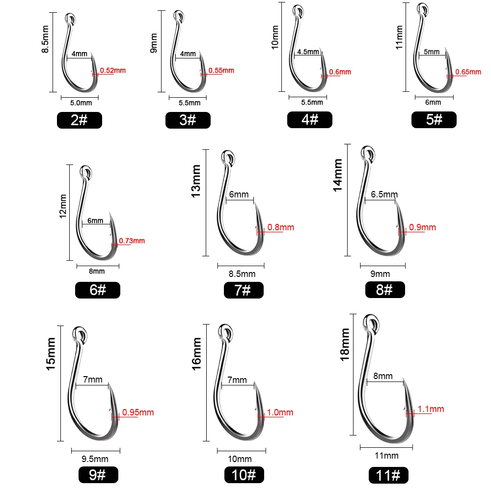 FTK 100 قطعة مجموعة خطافات صيد السمك مزيج الألوان من الفولاذ الكربوني دائرة واحدة 2 # -11 # خطاف صيد السمك يطير الصيد الشائكة خطافات سمك الشبوط معالجة البحر